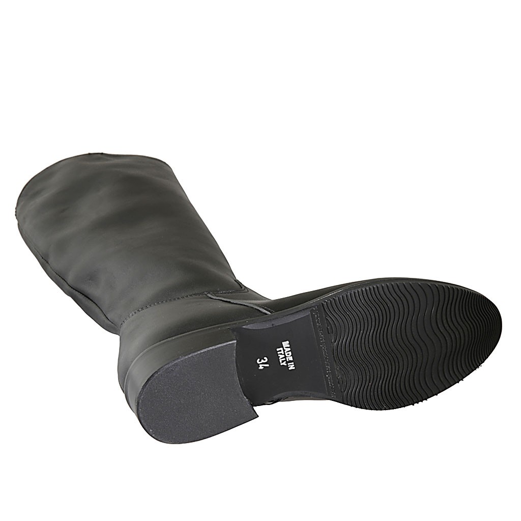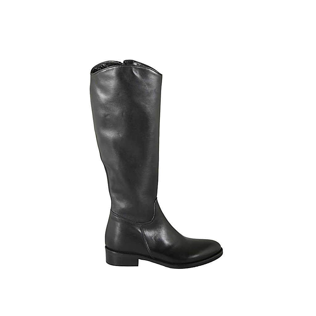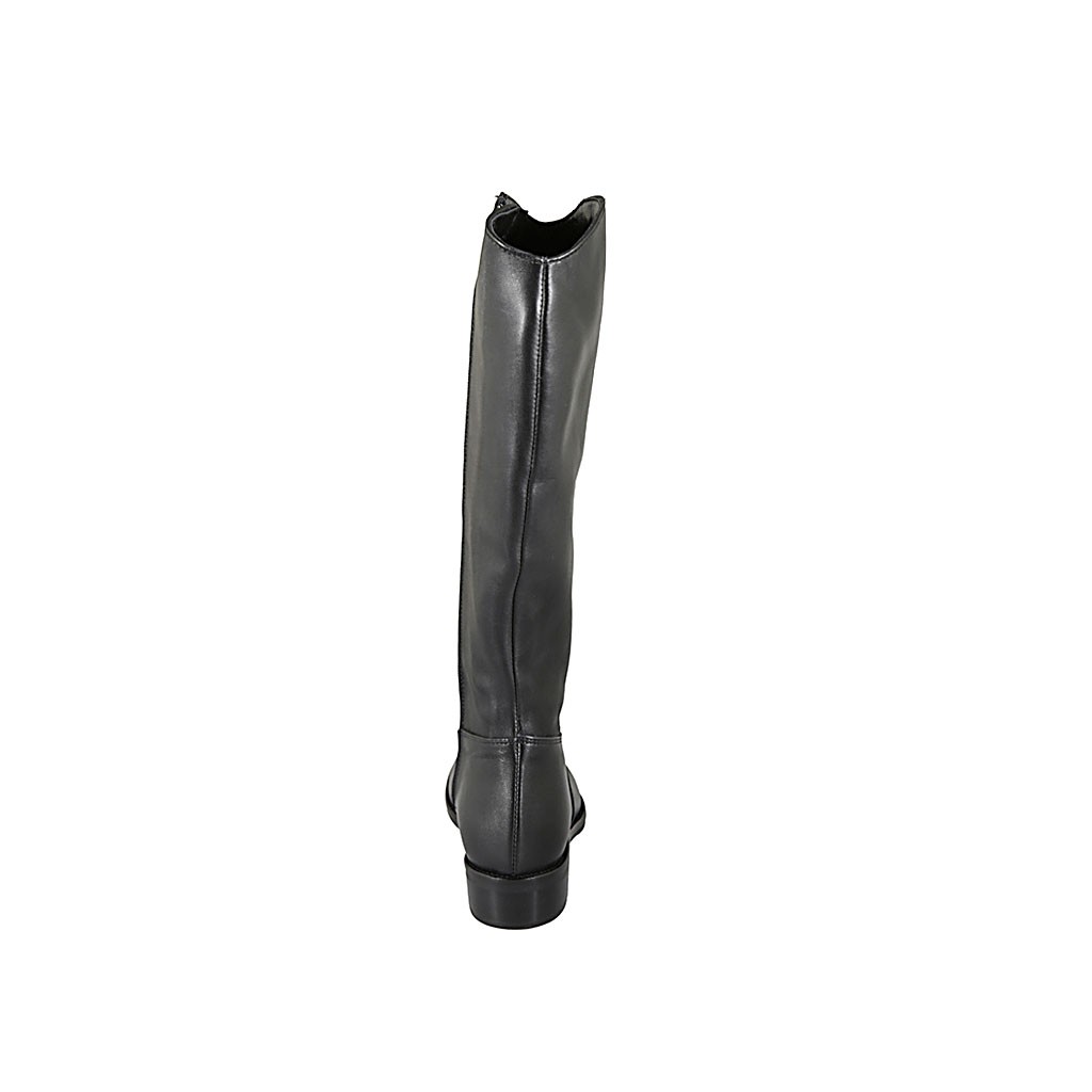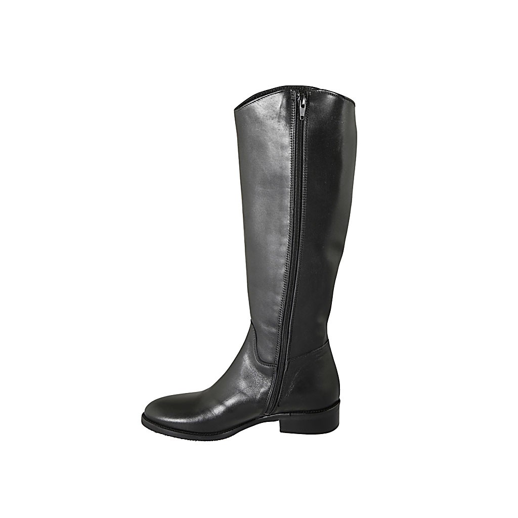 Klassischer Damenstiefel mit innerem Reiβverschluss aus schwarzfarbigem Leder Absatz 3