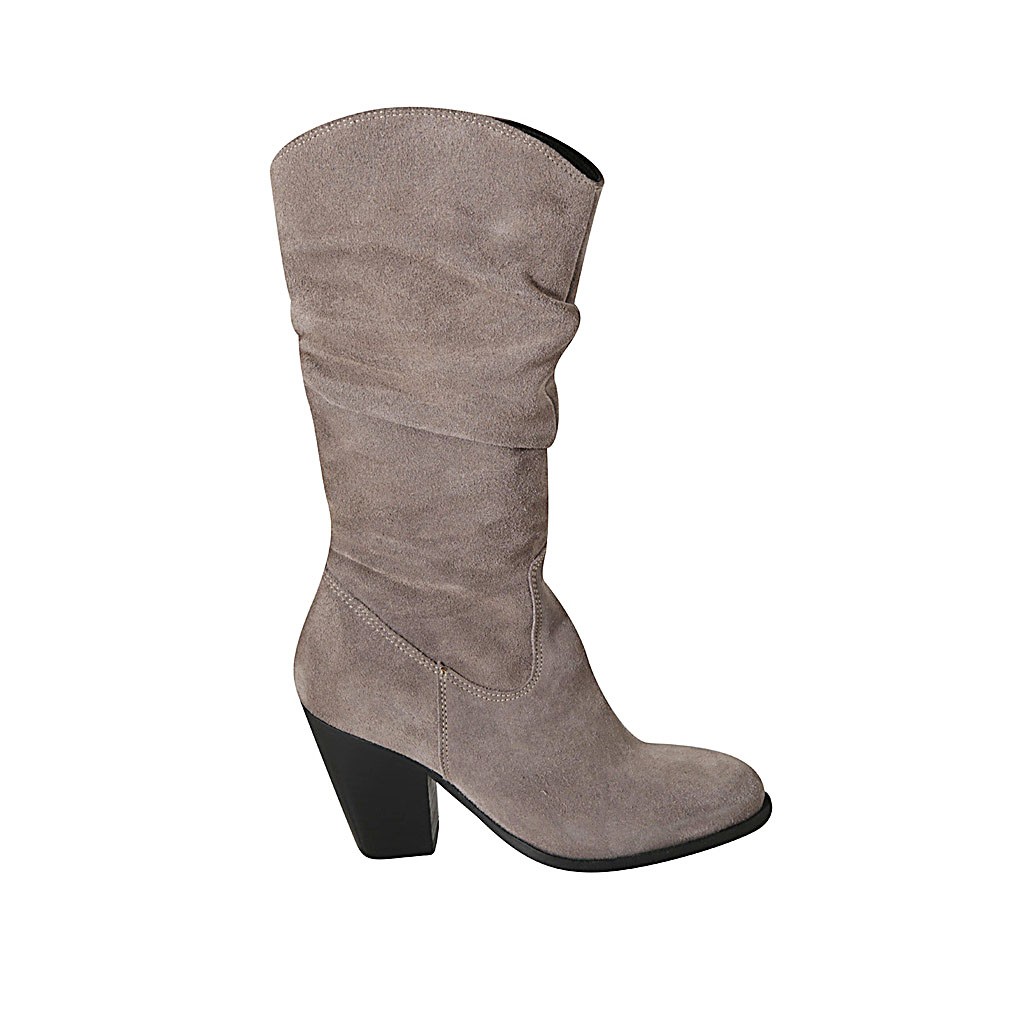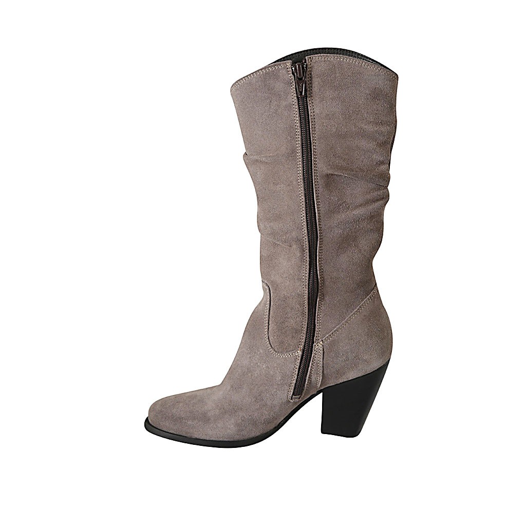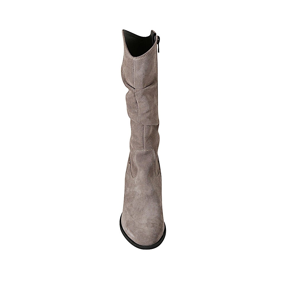 Damenstiefel mit Reiβverschluss aus taubengrauem Wildleder Absatz 8