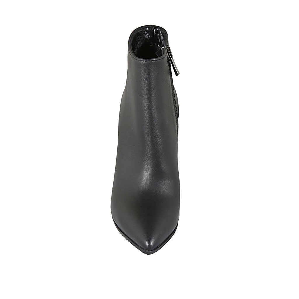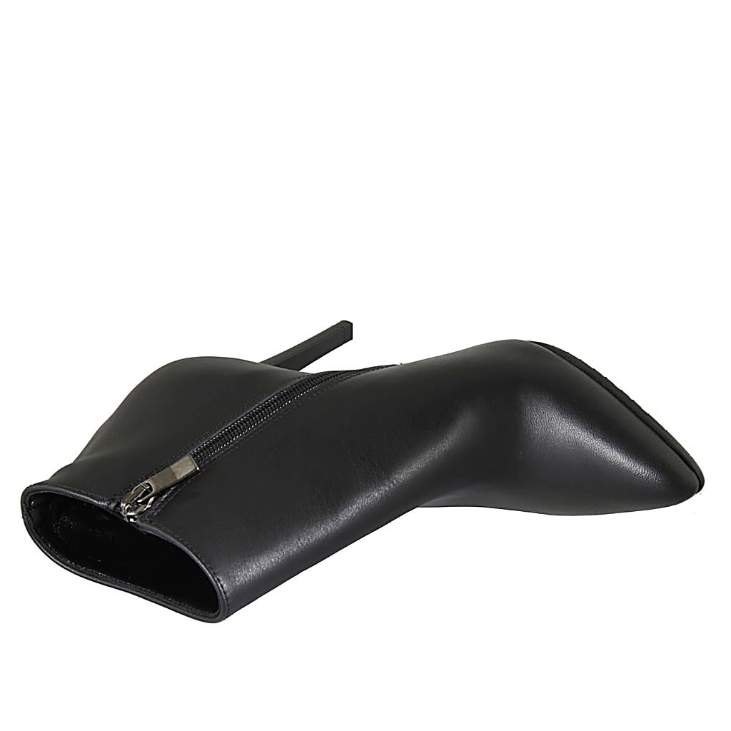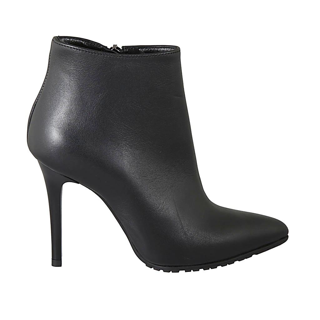 Spitze Damenstiefelette mit seitlichem Reissverschluss aus schwarzem Leder Absatz 10