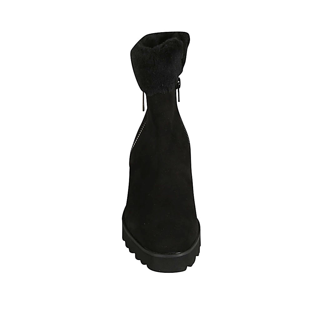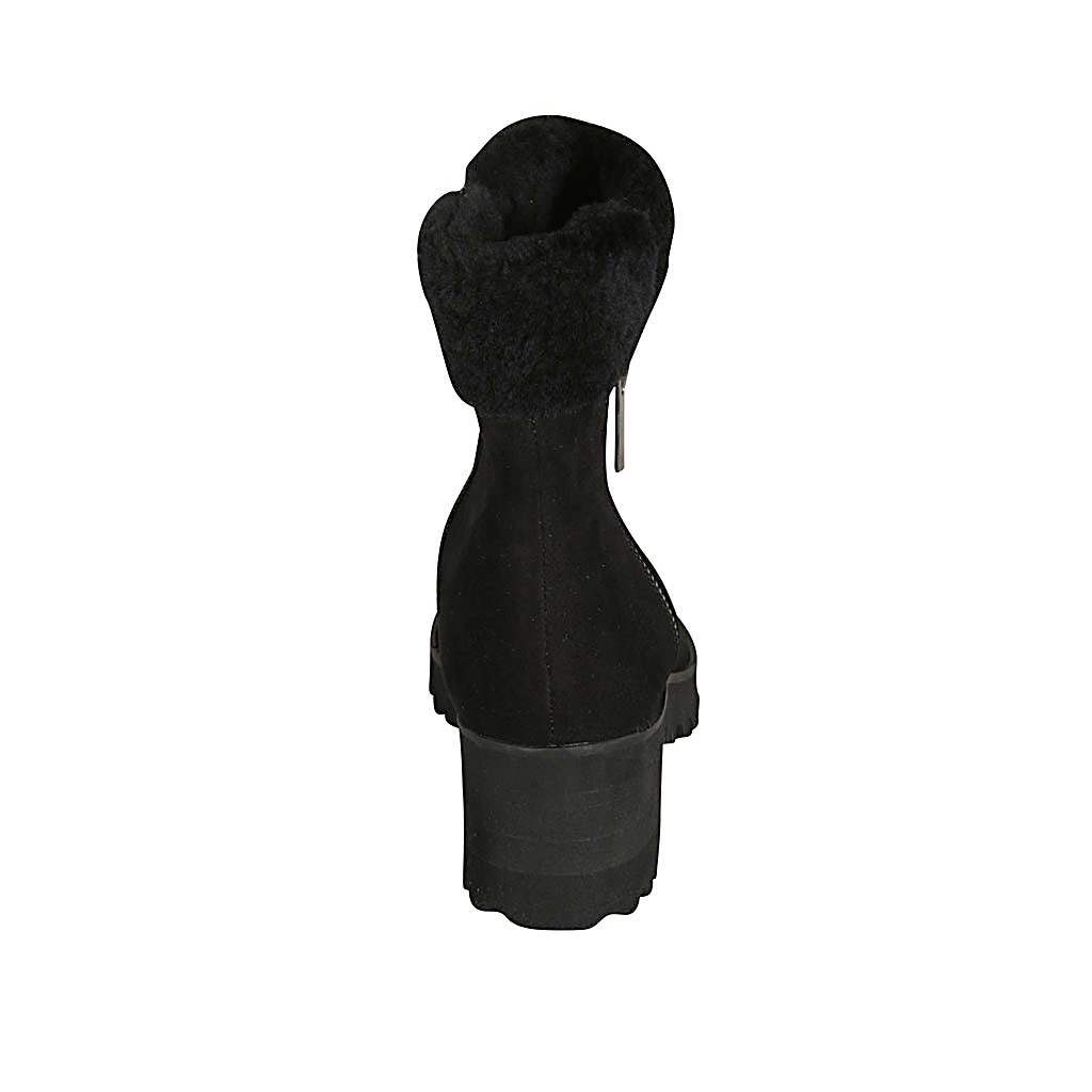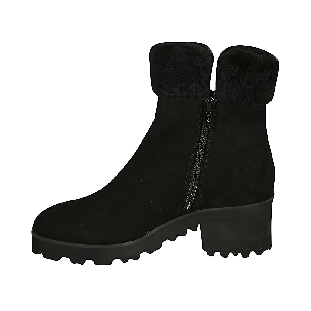 Damenstiefelette mit Reißverschlüssen aus schwarzem Wildleder Absatz 5