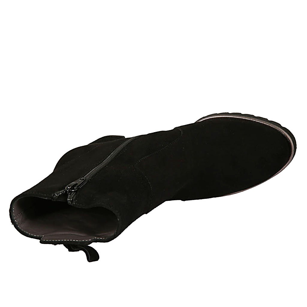 Woman's ankle boot with zipper and velvet bow in black suede heel 6
