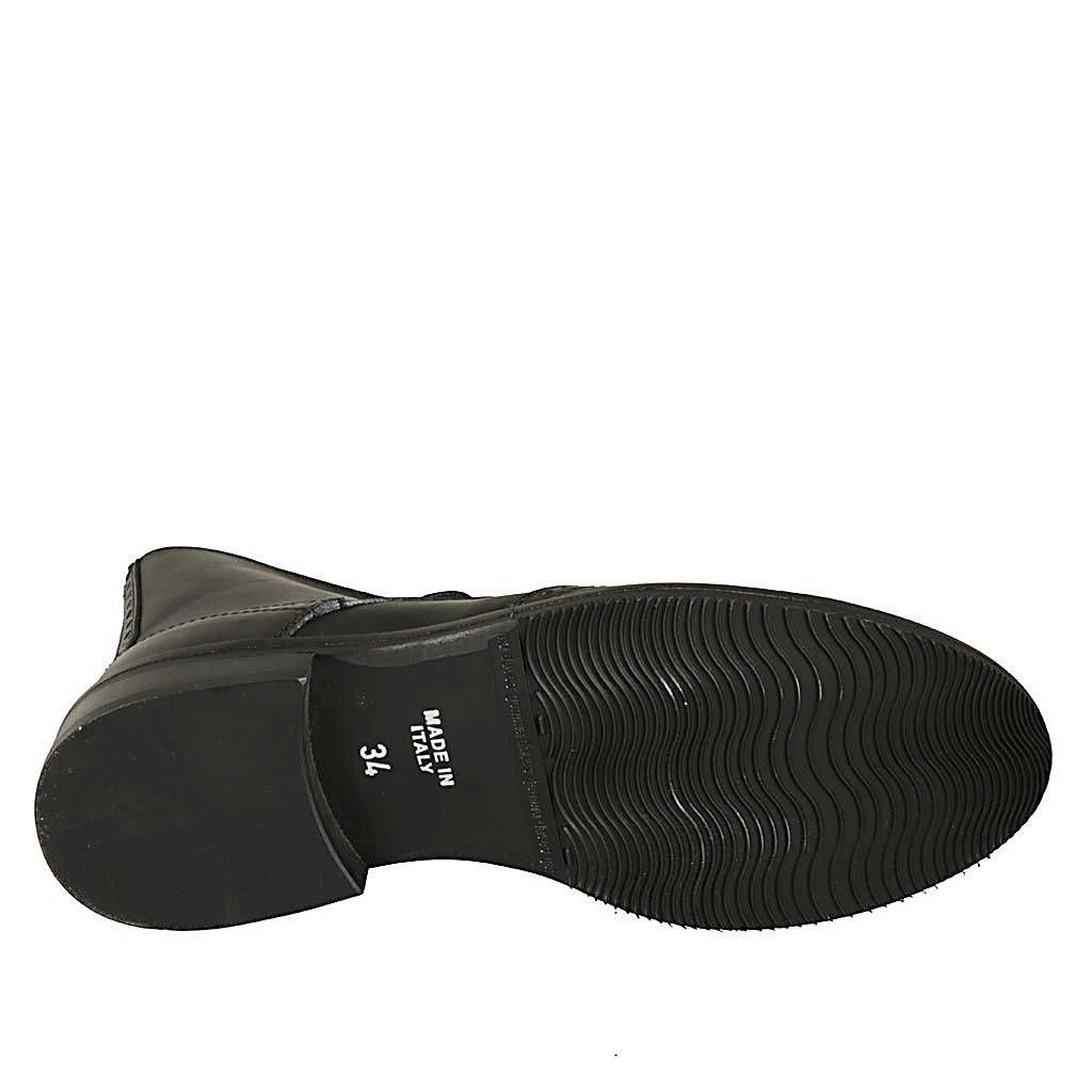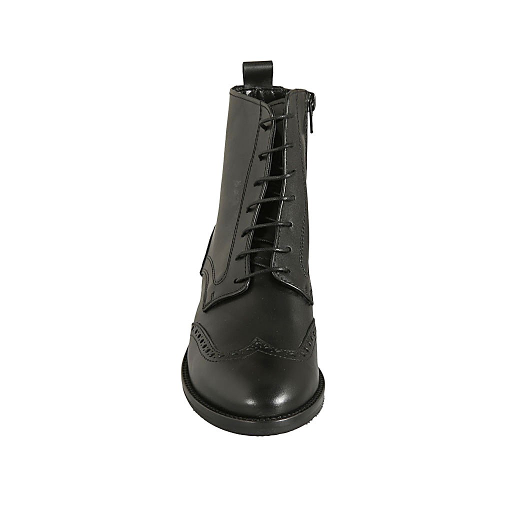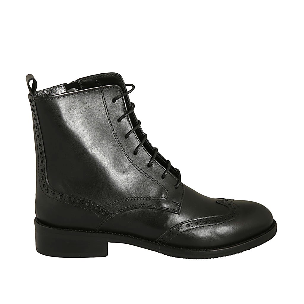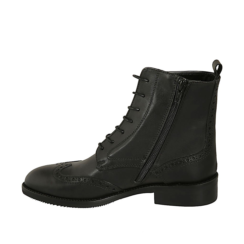 Woman's laced ankle boot with zipper and wingtip in black leather heel 3