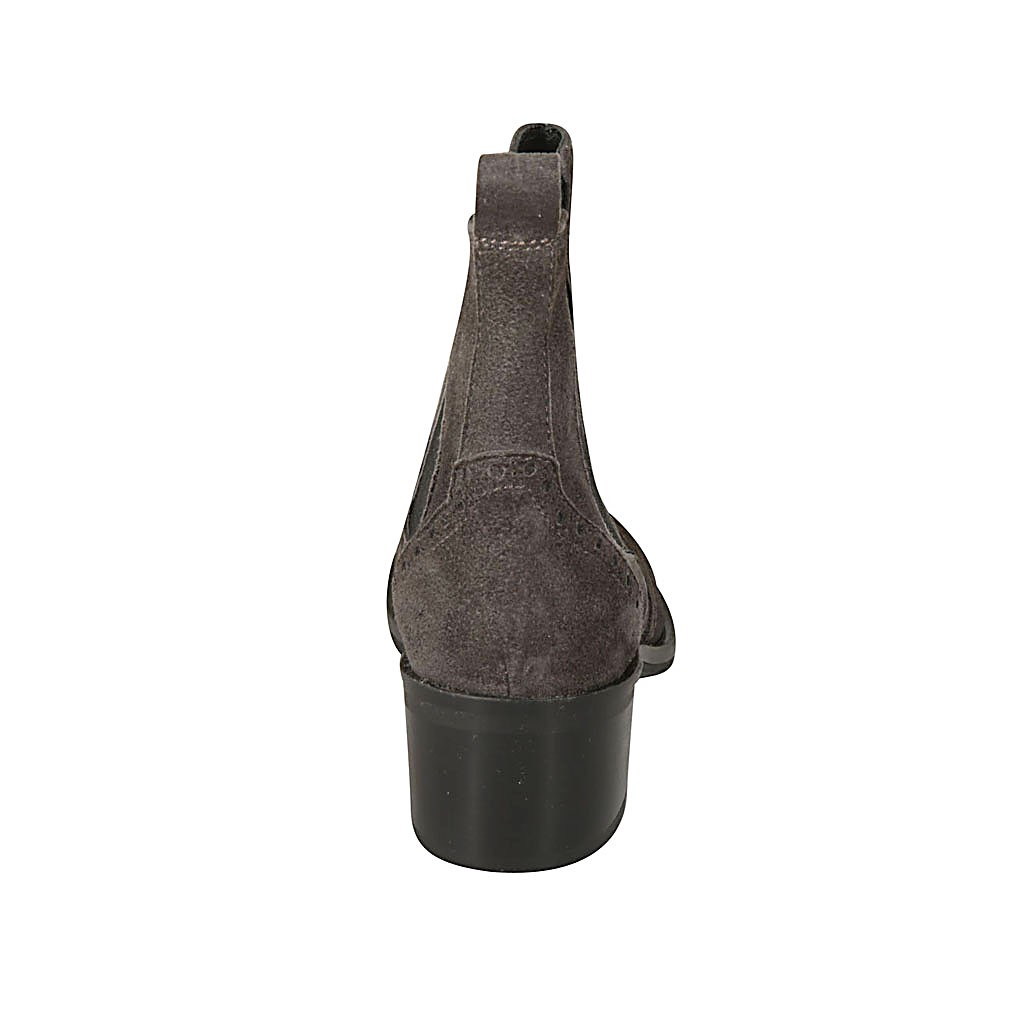 Woman's ankle boot with elastic bands and wingtip in grey suede heel 5