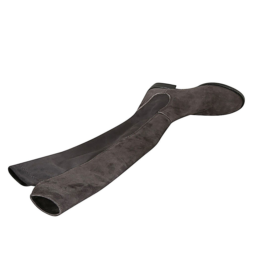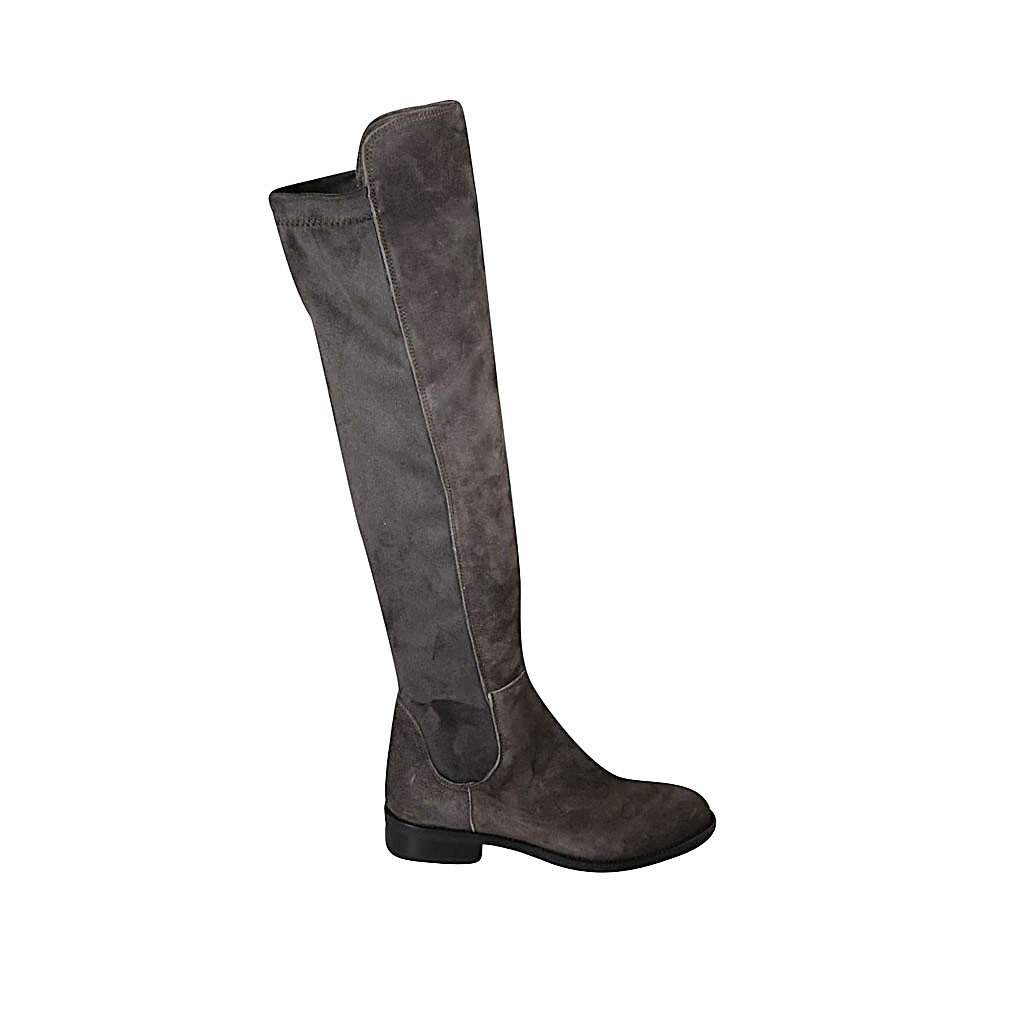 Woman's boot in grey suede and elastic material heel 3