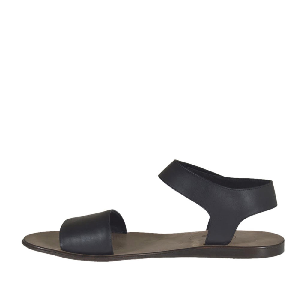 Men's sandal with velcro strap, in black leather, rubber sole, leather lining. Available in large sizes.