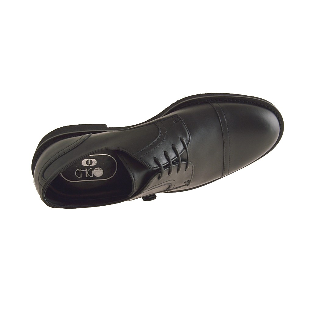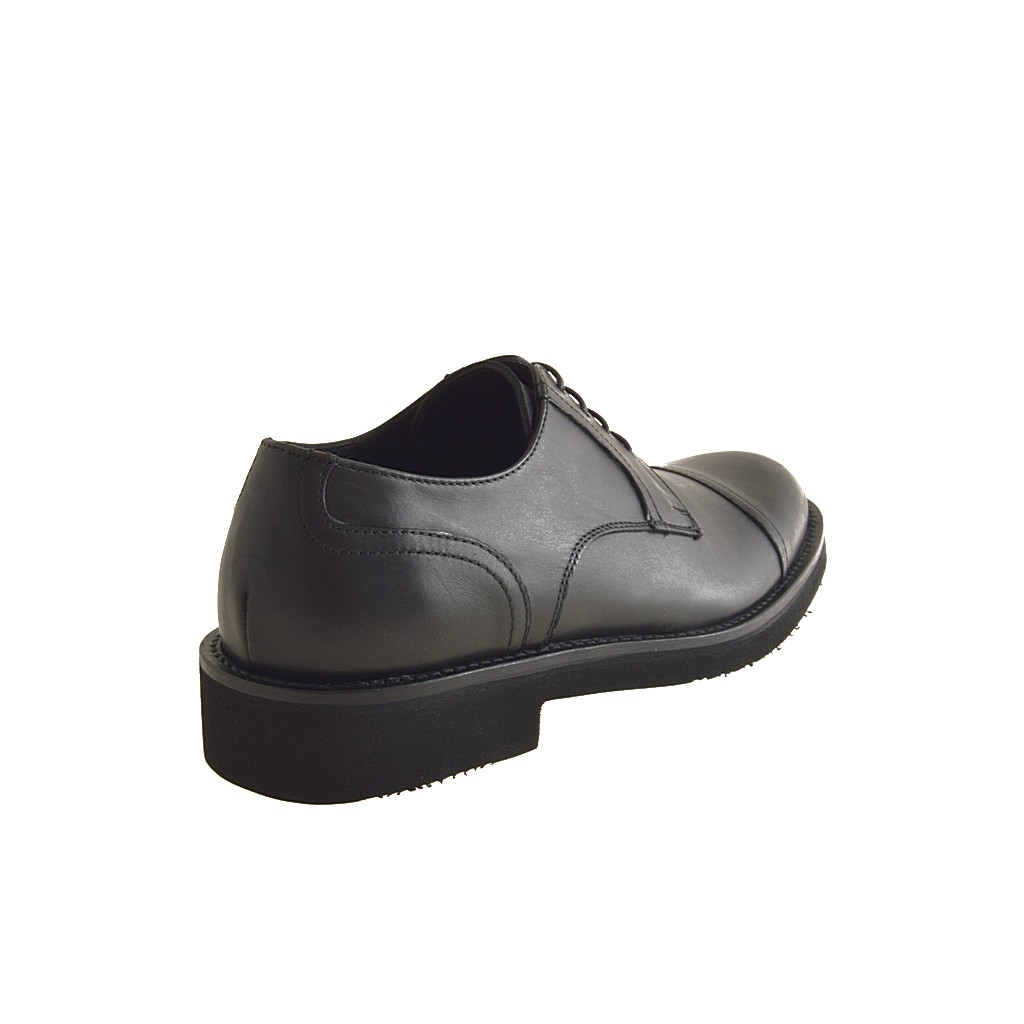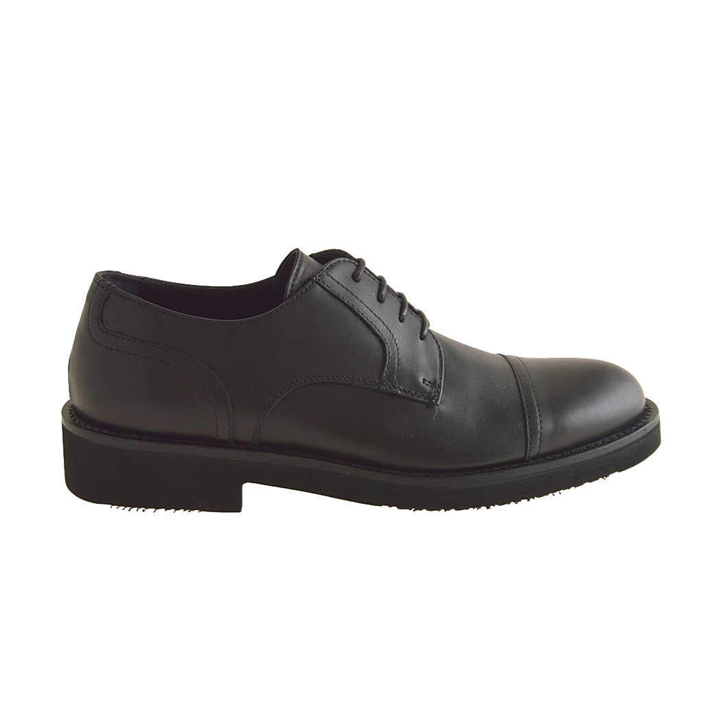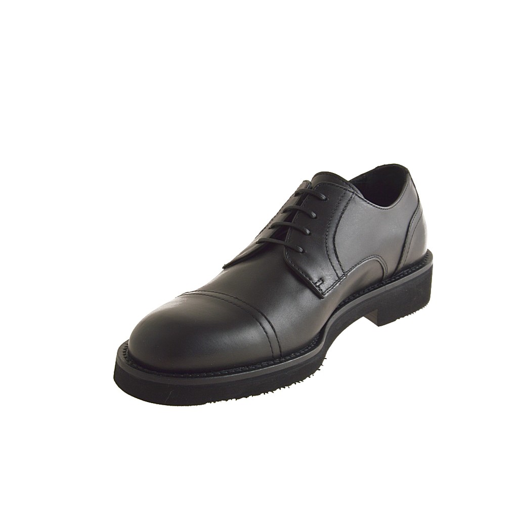 Men's laced shoe with captoe in black leather