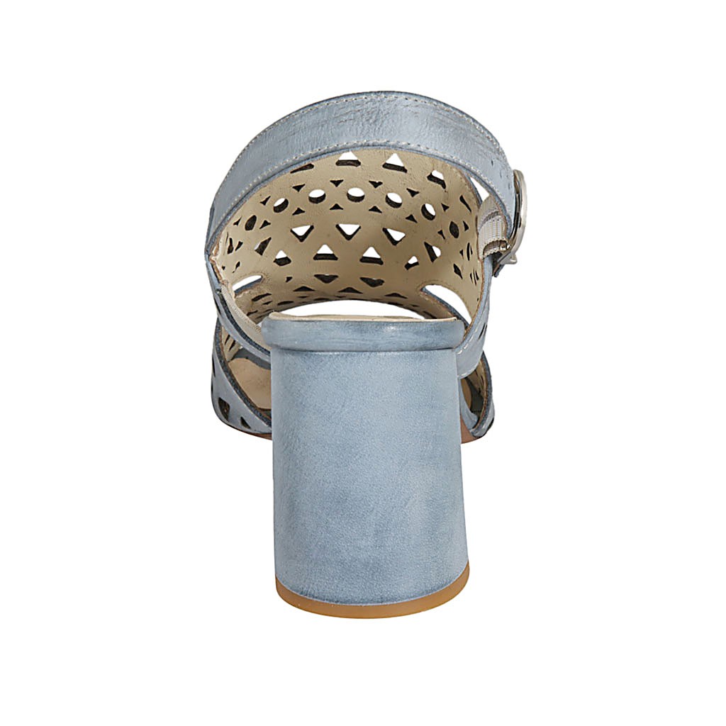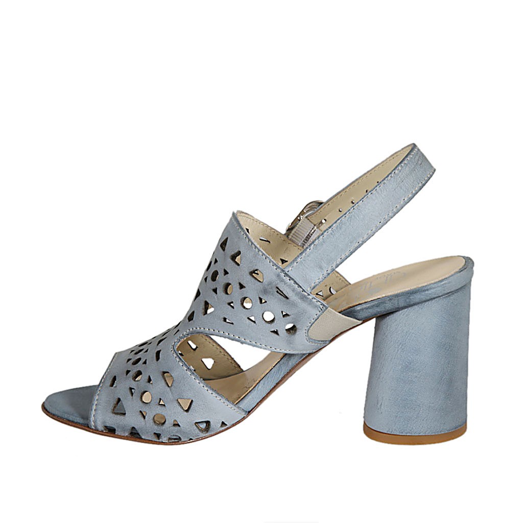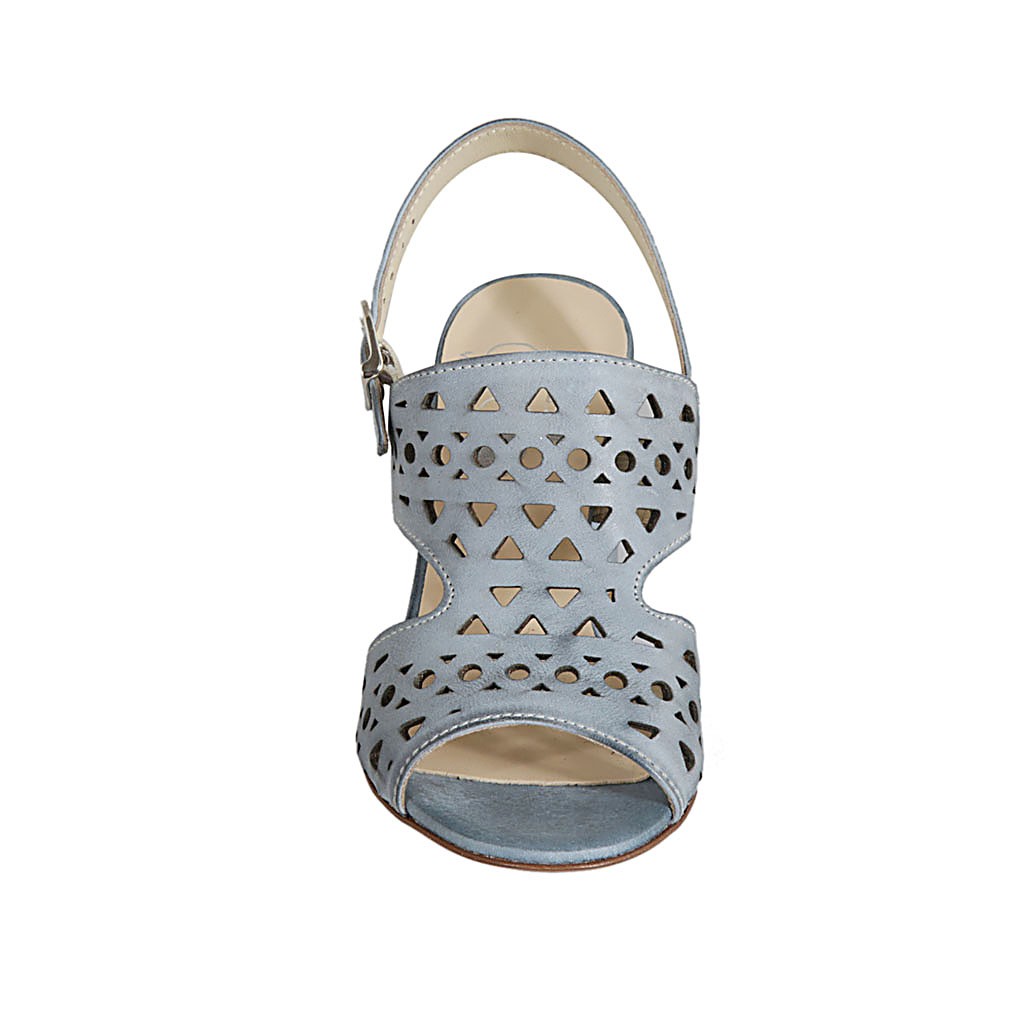 Woman's sandal in bluegrey pierced leather heel 7