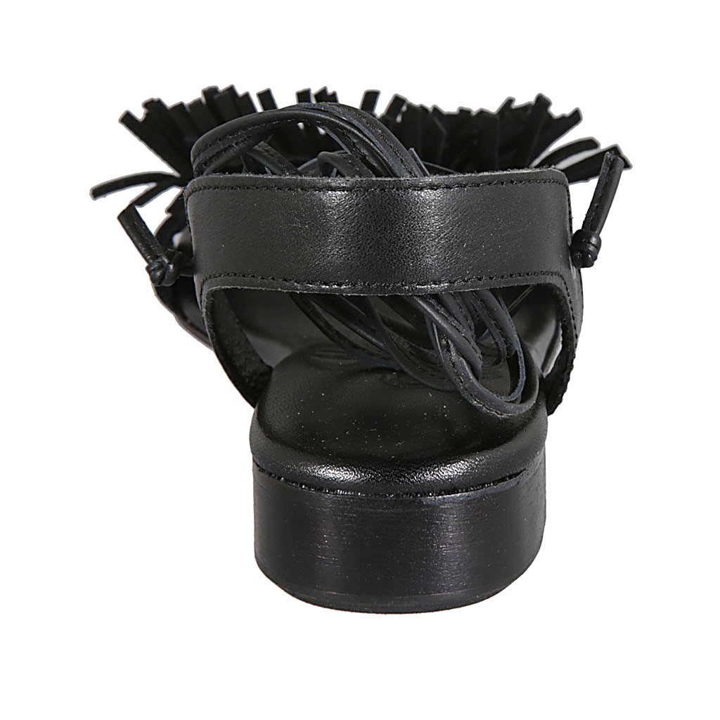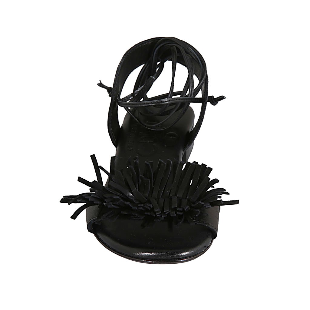Woman's sandal with laces in black leather and suede heel 2