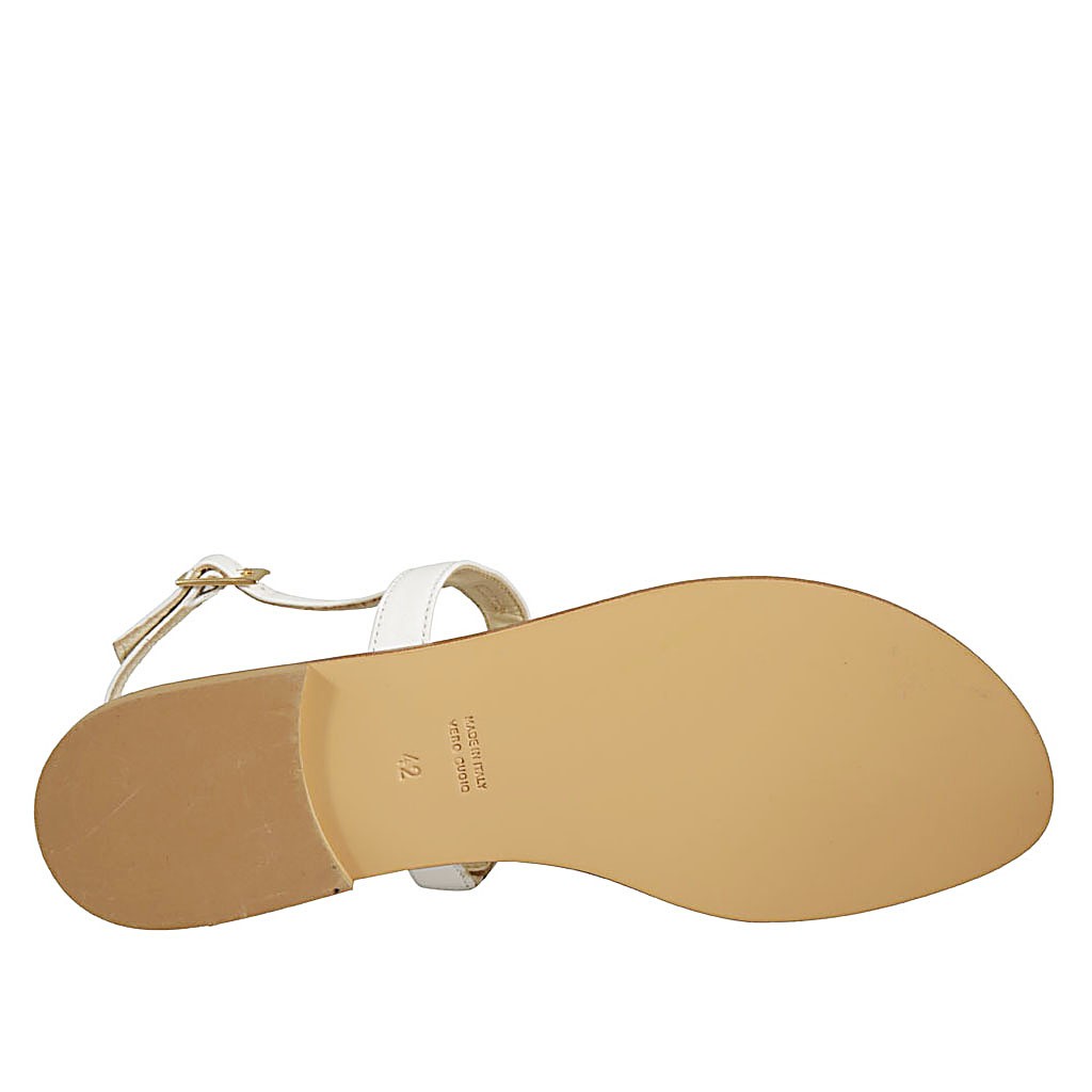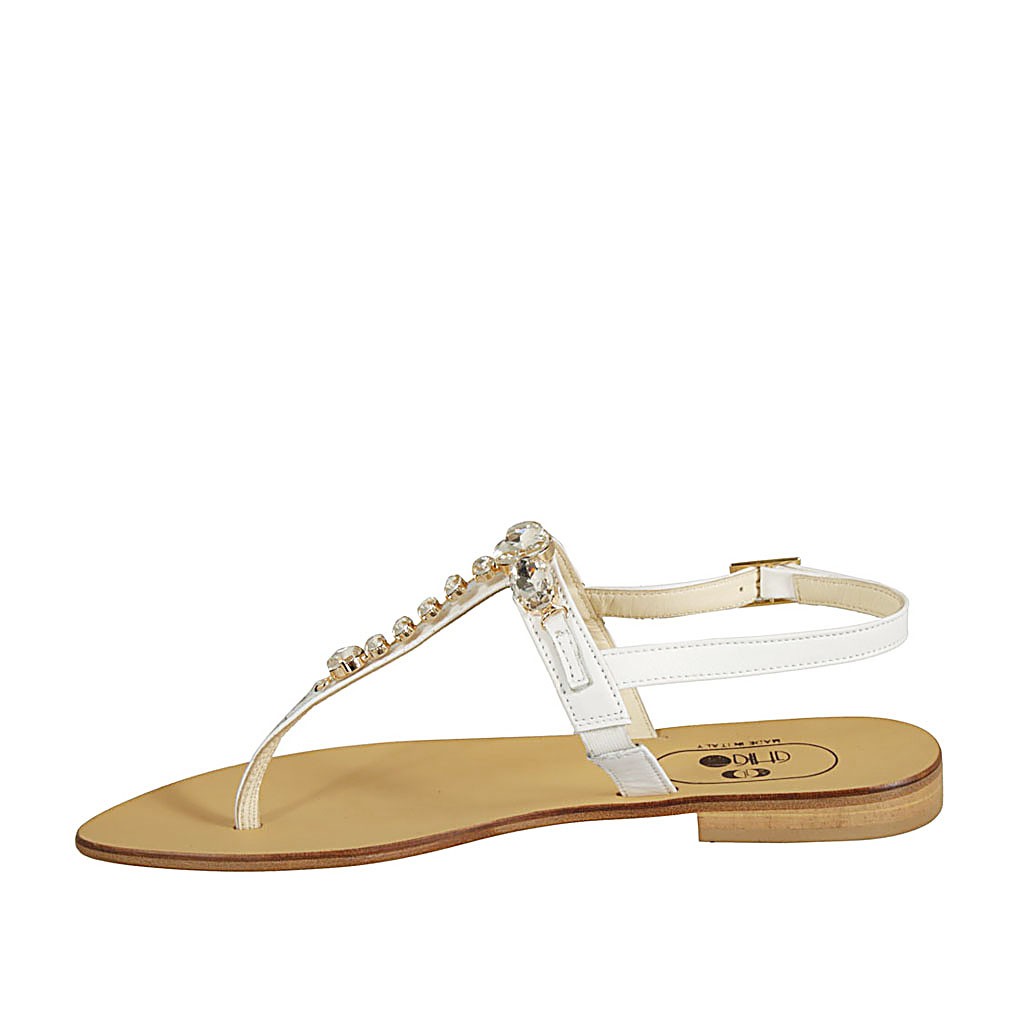 Woman's flip-flop sandal in white leather with rhinestones heel 2