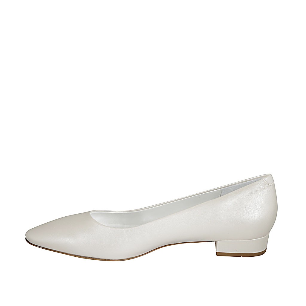 Woman's pointy ballerina shoe in ivory pearled leather heel 2