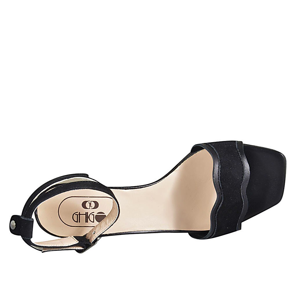 Woman's open shoe with anklestrap in black leather and suede heel 4