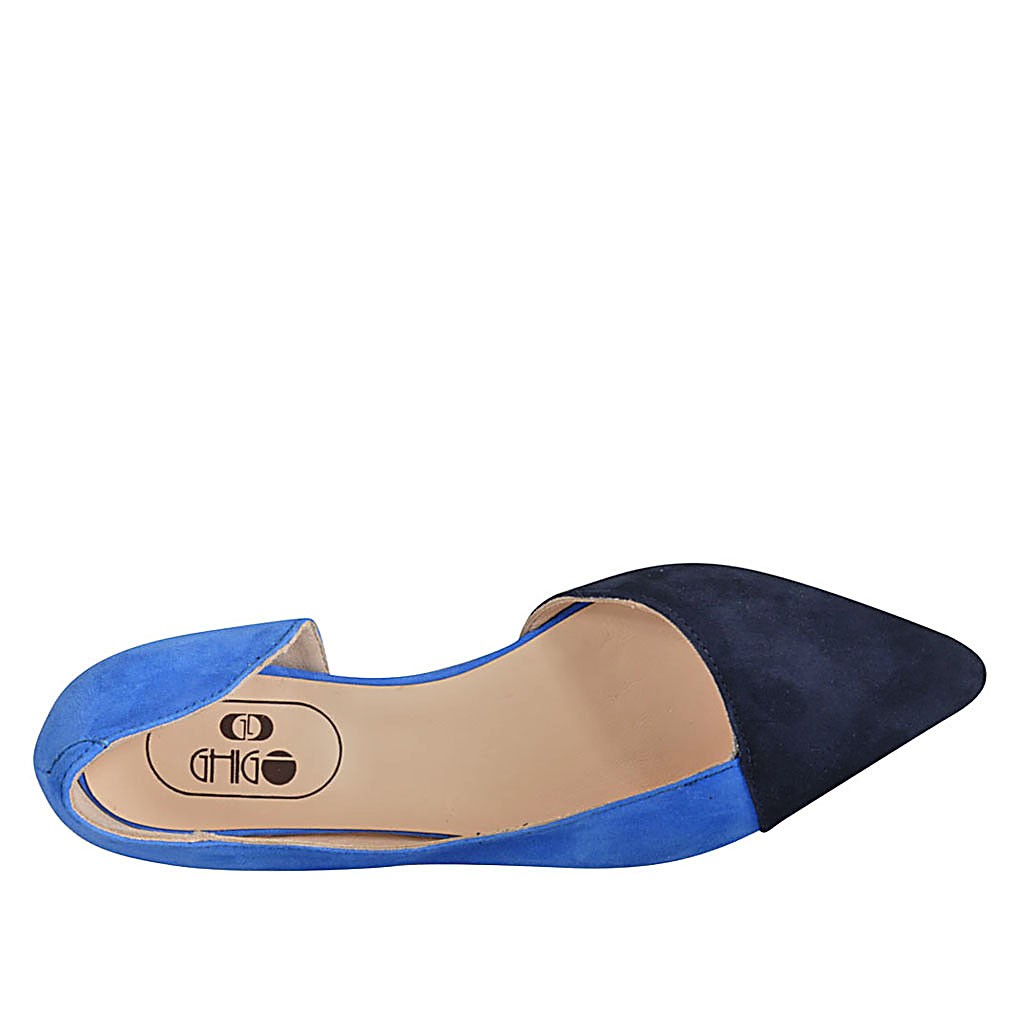 Woman's open shoe in blue and cornflower blue suede heel 2