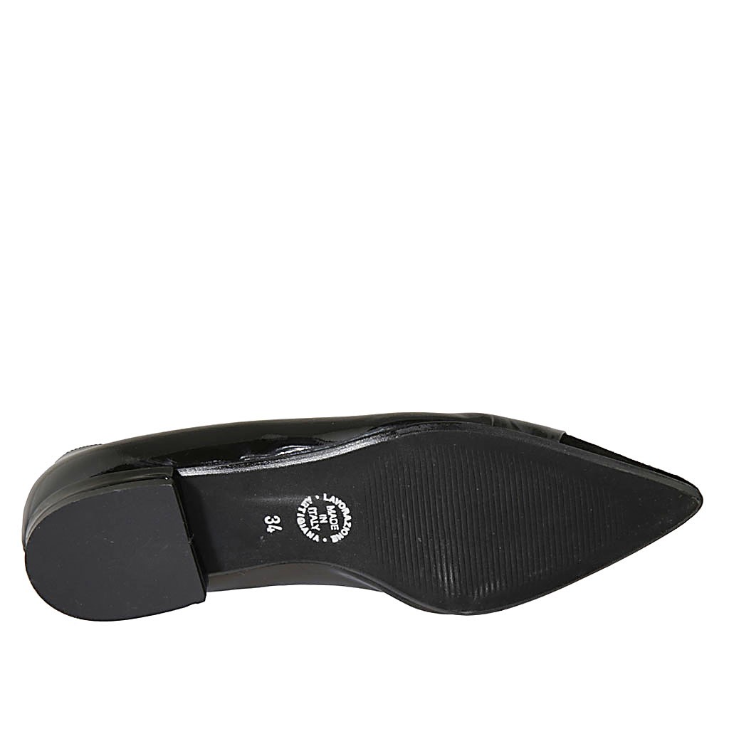 Bailerina a punta para mujer en charol y gamuza negra tacon 1