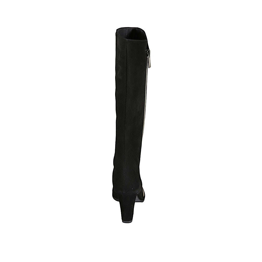 Botas puntiagudos para mujer con cremallera en gamuza negra tacon 7