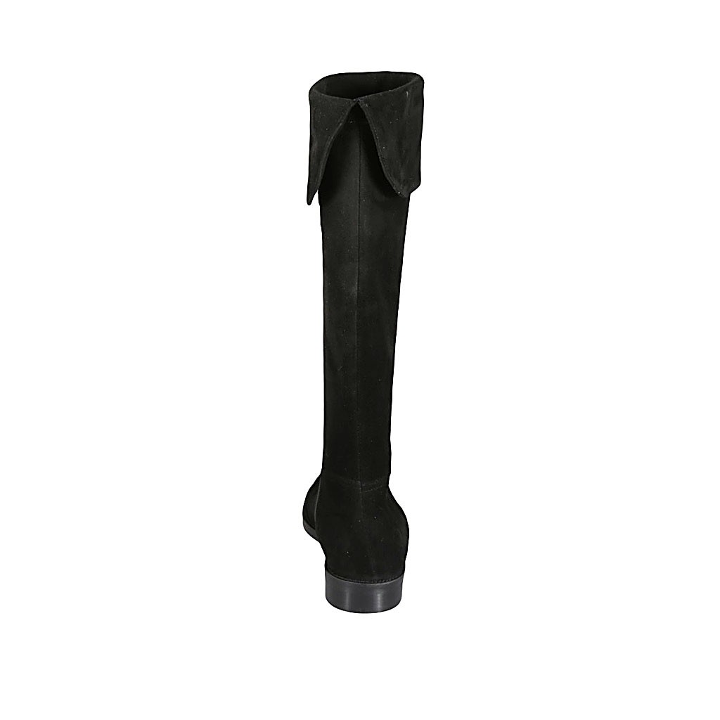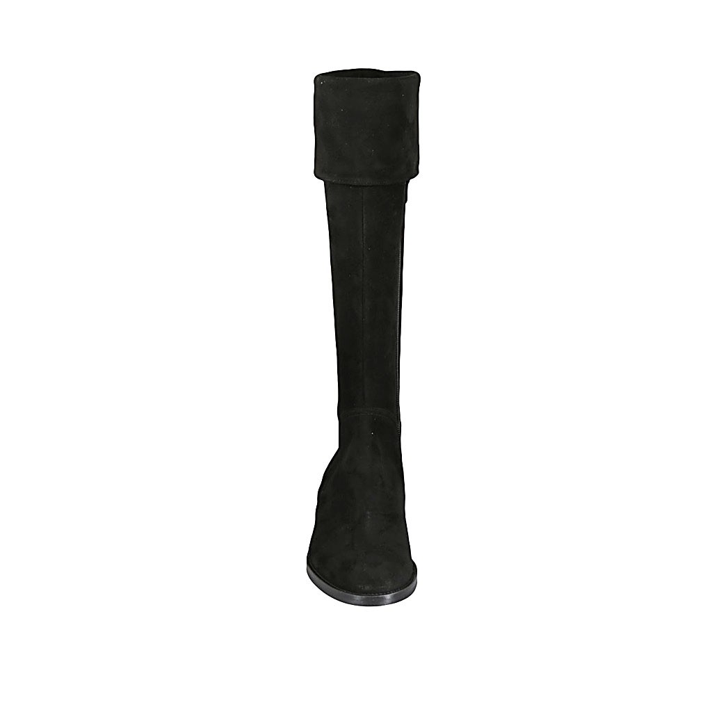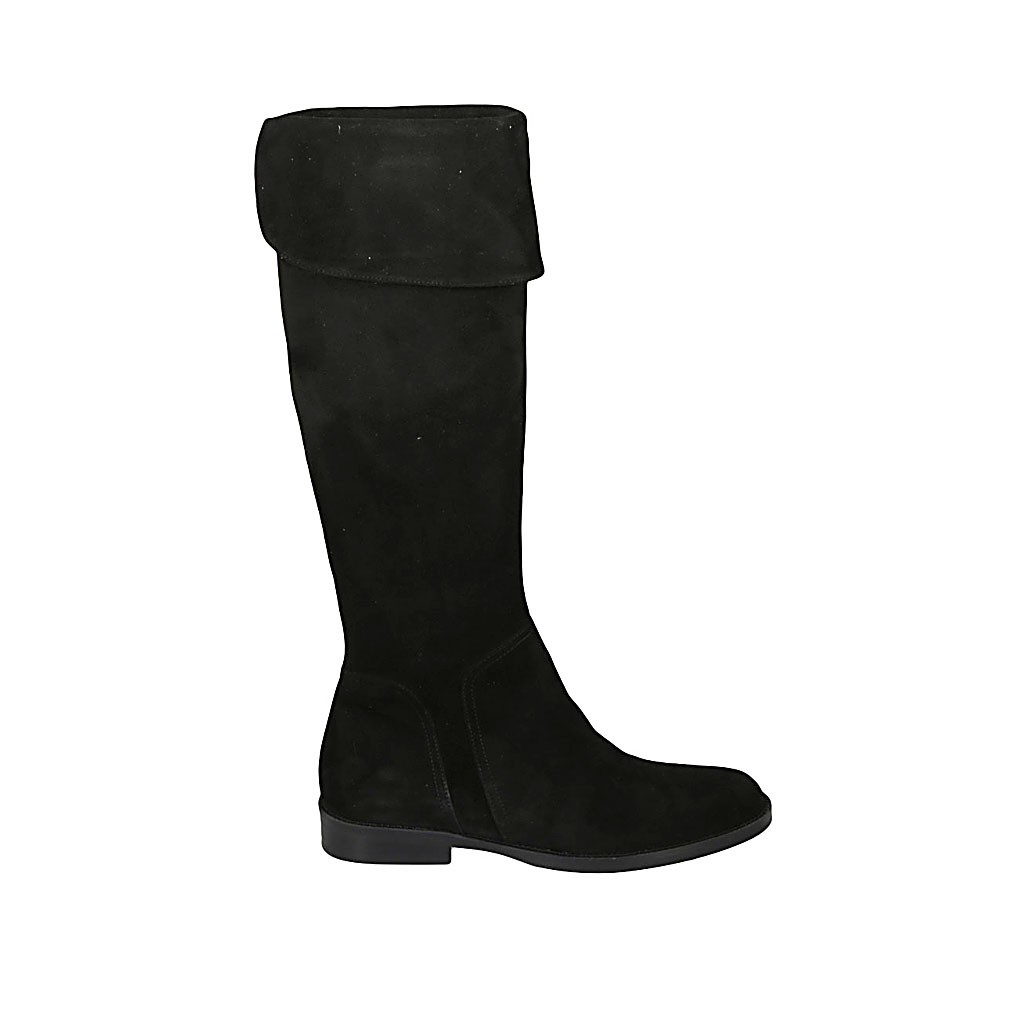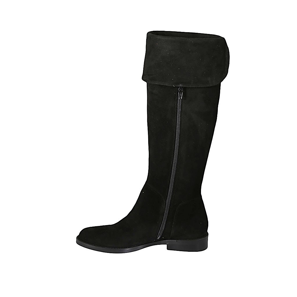 Botas para mujer con solapa y cremallera en gamuza negra tacon 3