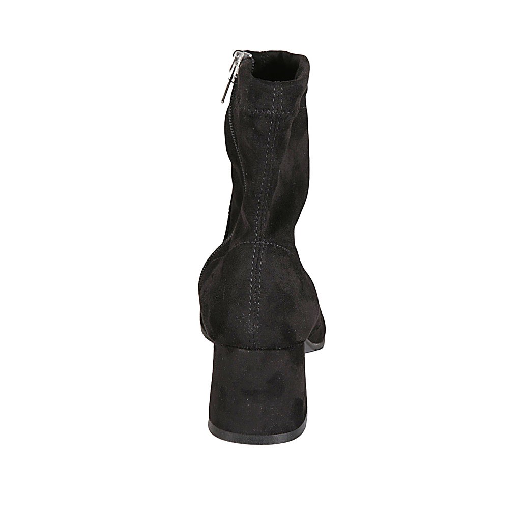 Bottines para mujer en gamuza elastica negra con cremallera tacon 5