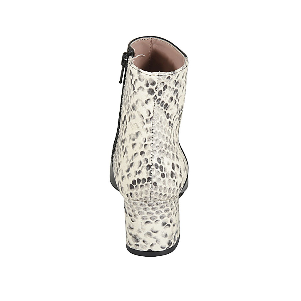 Botines a punta para mujer con cremallera en piel negra y estampada negra y beis tacon 5