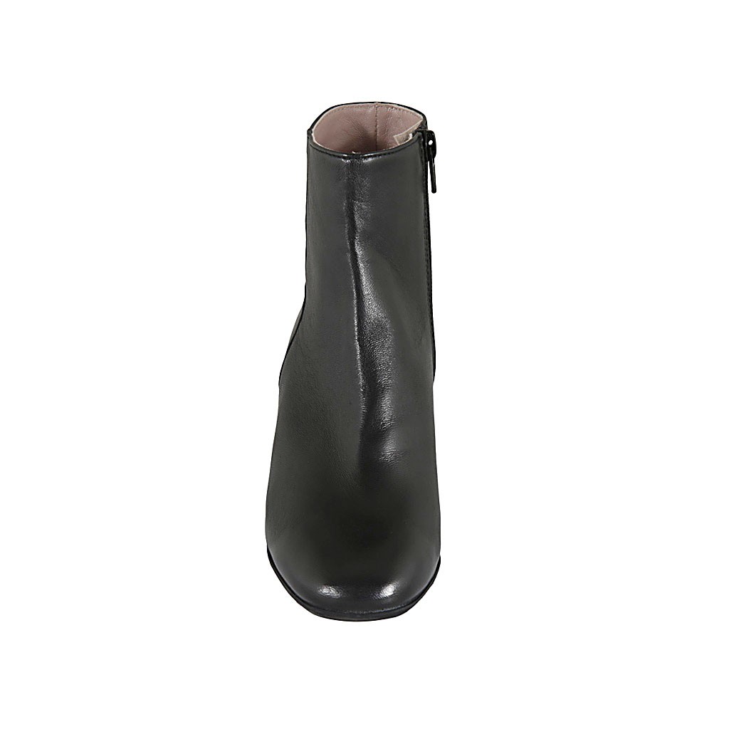 Botines para mujer con cremallera y punta redonda en piel negra tacon 5