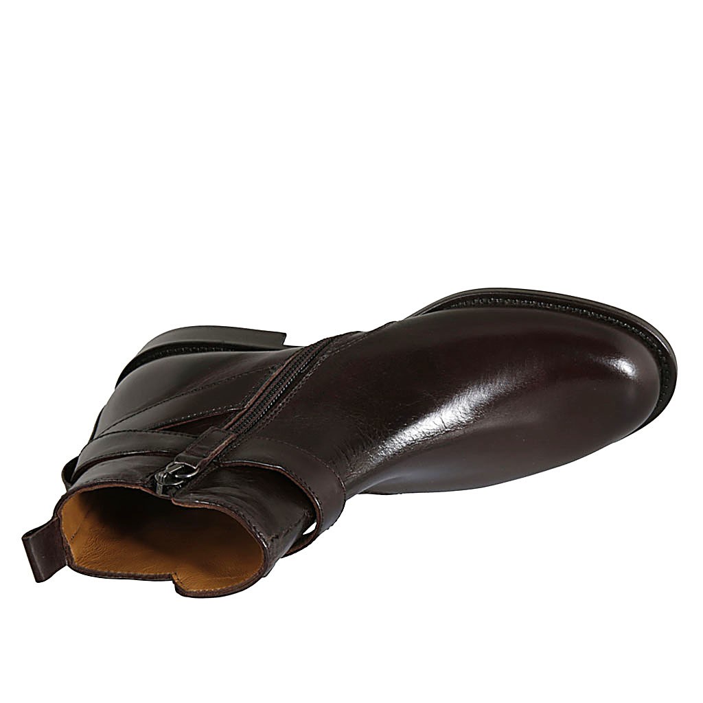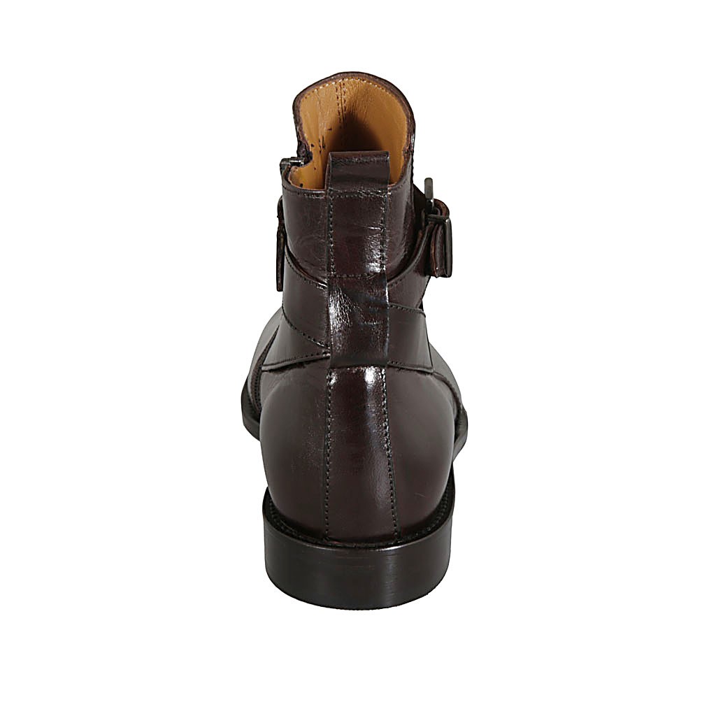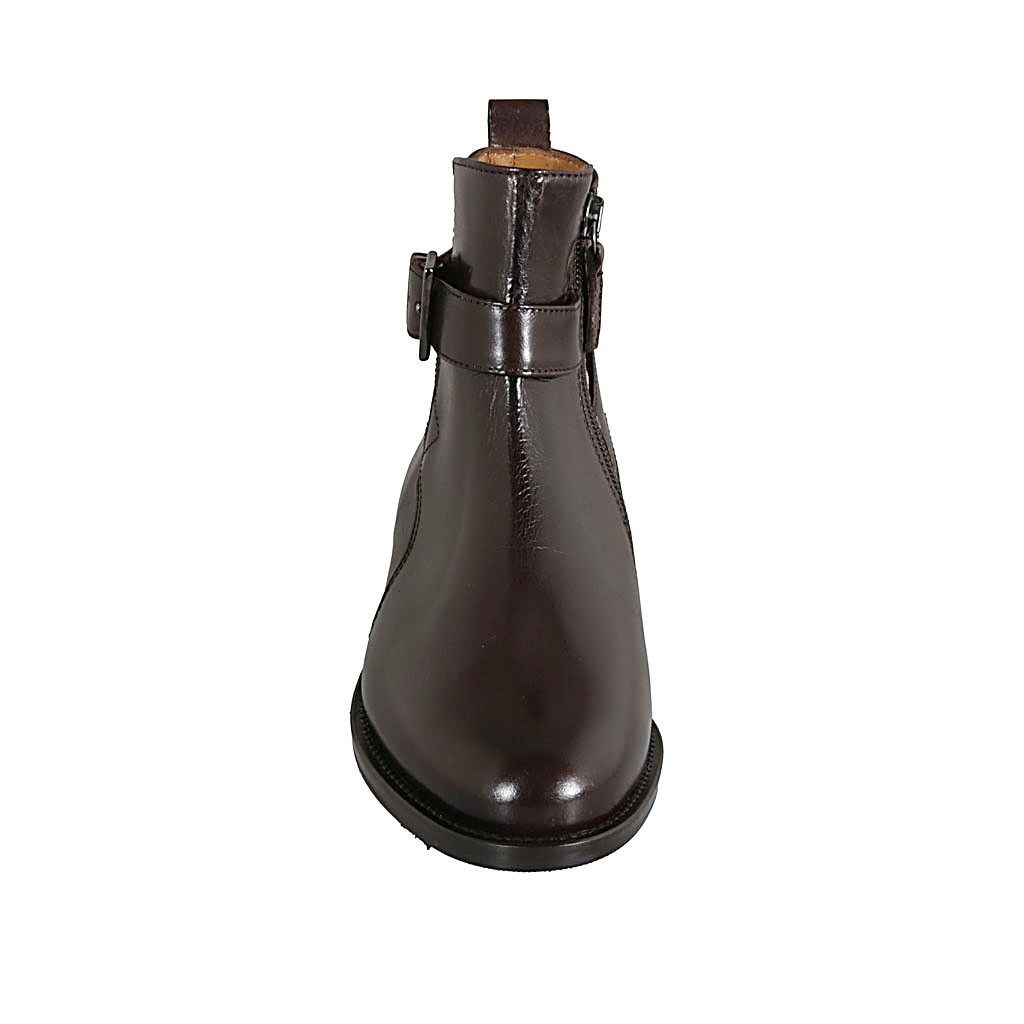 Botines para mujer con hebilla y cremallera en piel marron oscuro tacon 2