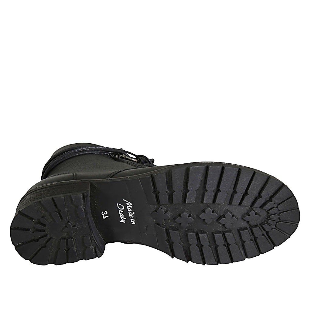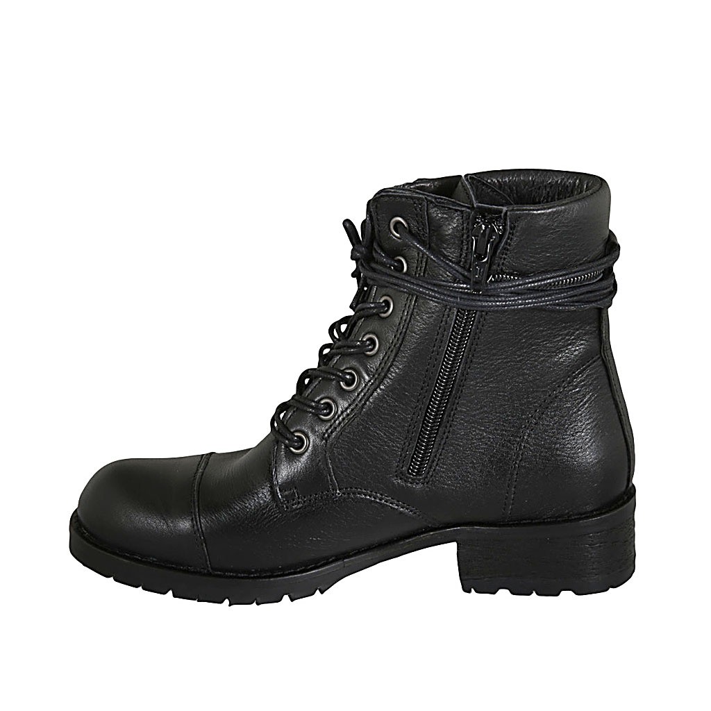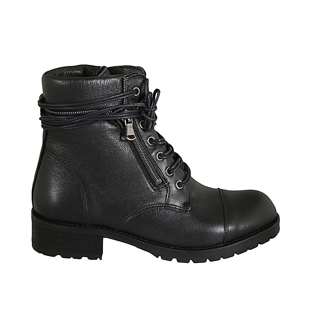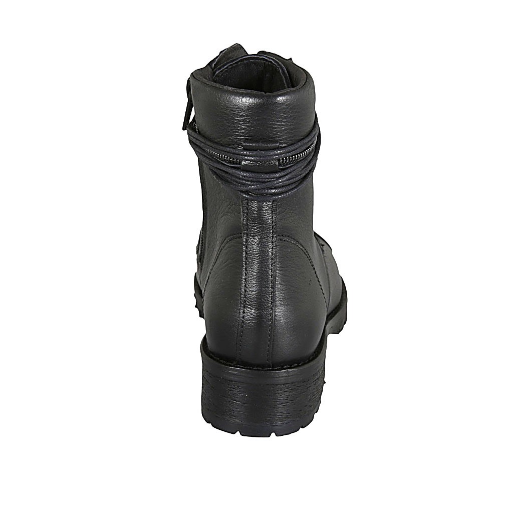 Botin para mujer con cordones, cremalleras y puntera en piel negra tacon 4