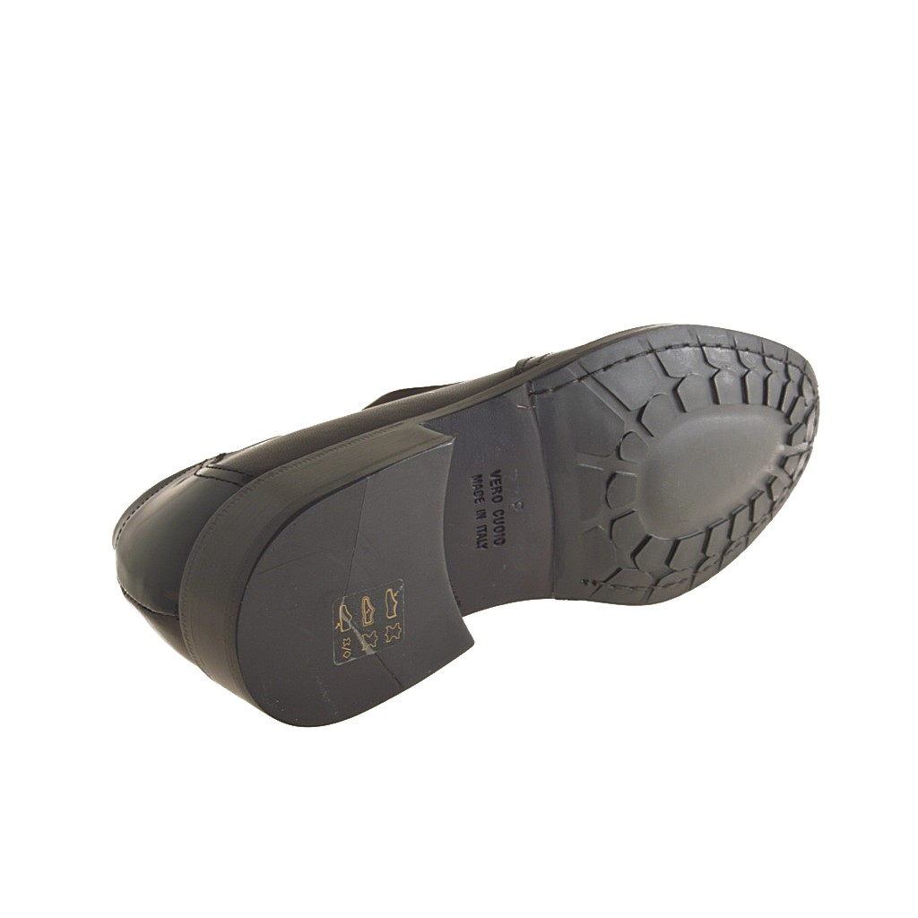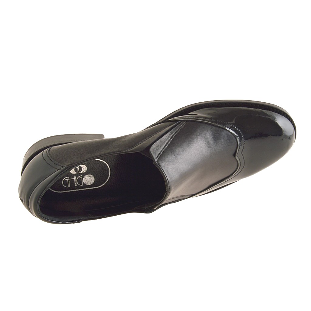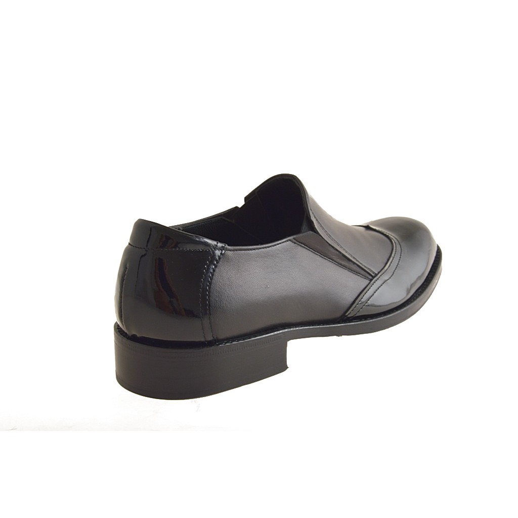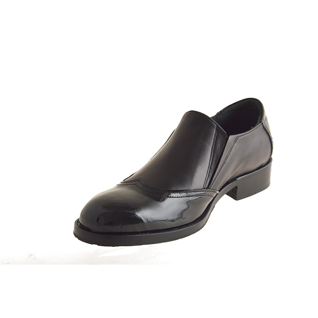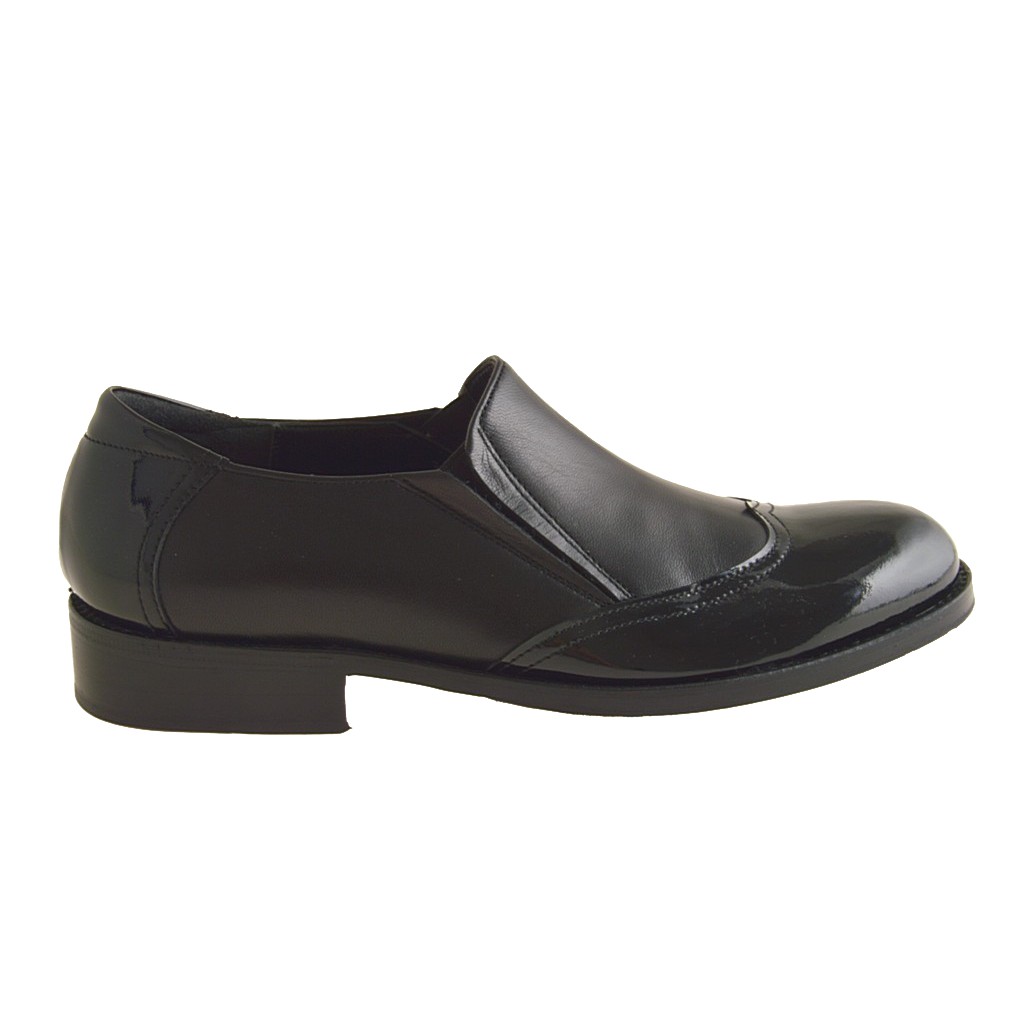 Zapato elegante con elasticos y punta de ala para hombres en charol y piel negra