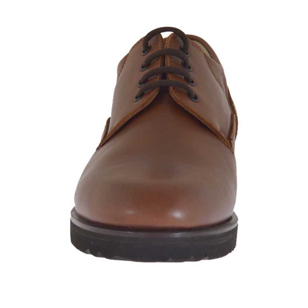 Zapatos cerrados con cordones, en piel de color marron, fondo en goma, forro en piel. Disponible en tallas pequeñas y grandes.