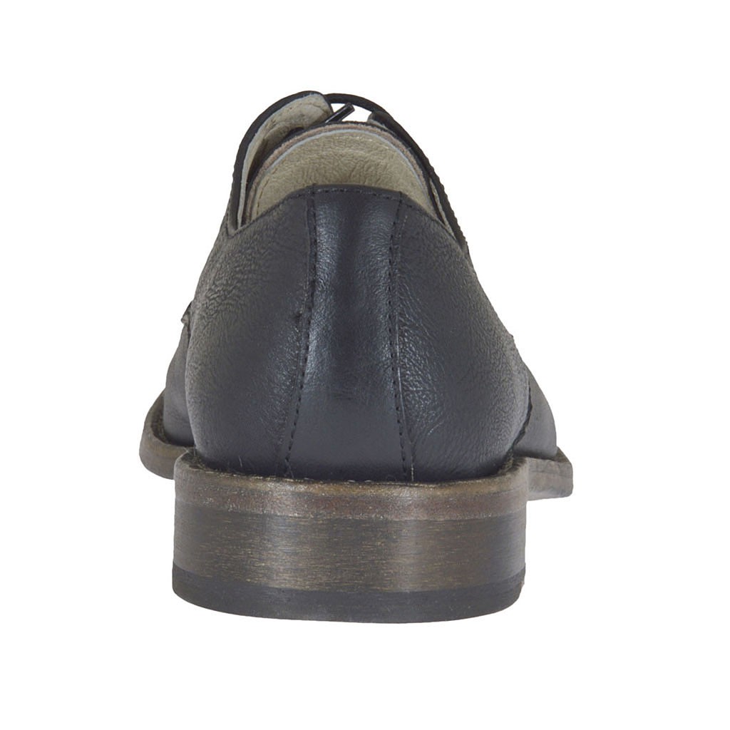 Zapato elegante con cordones para hombre, en piel de color negro, fondo en cuero, forro en piel. Disponible en tallas pequeñas y en tallas grandes.