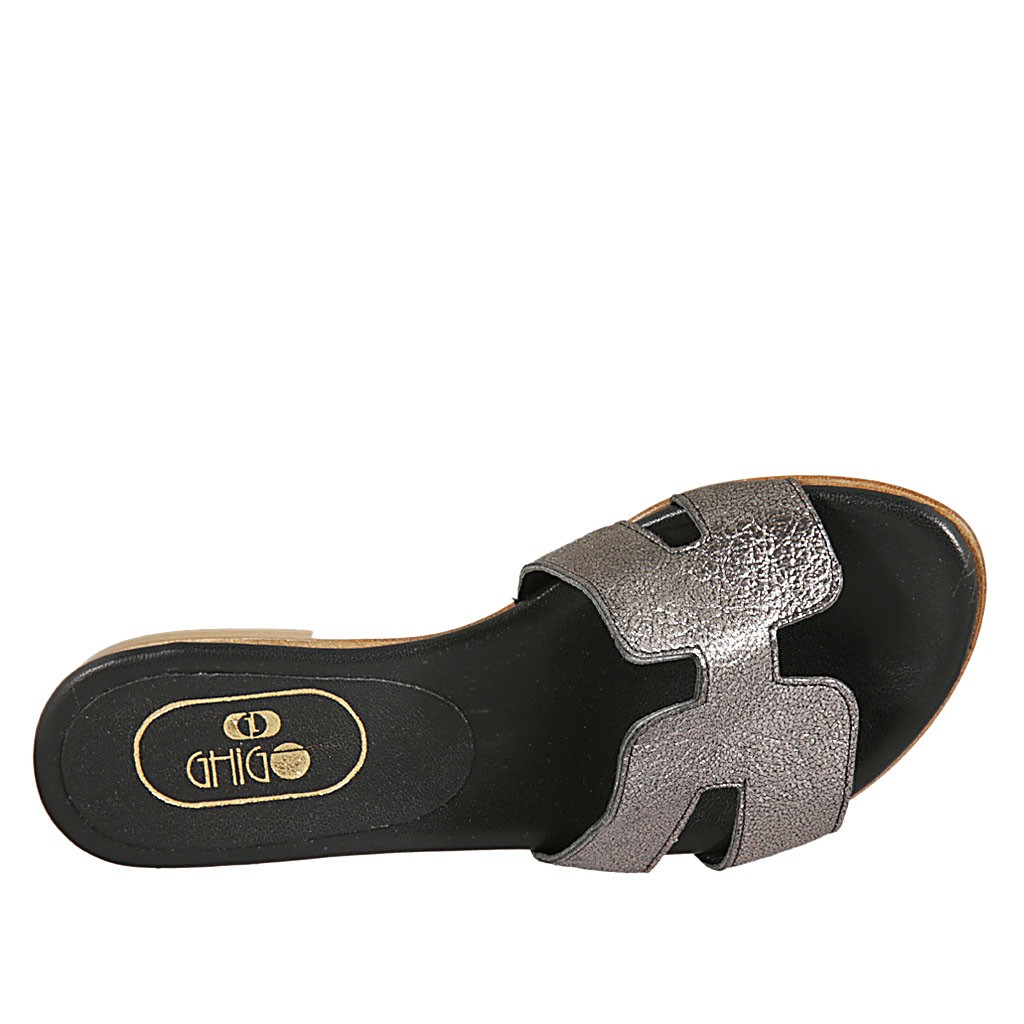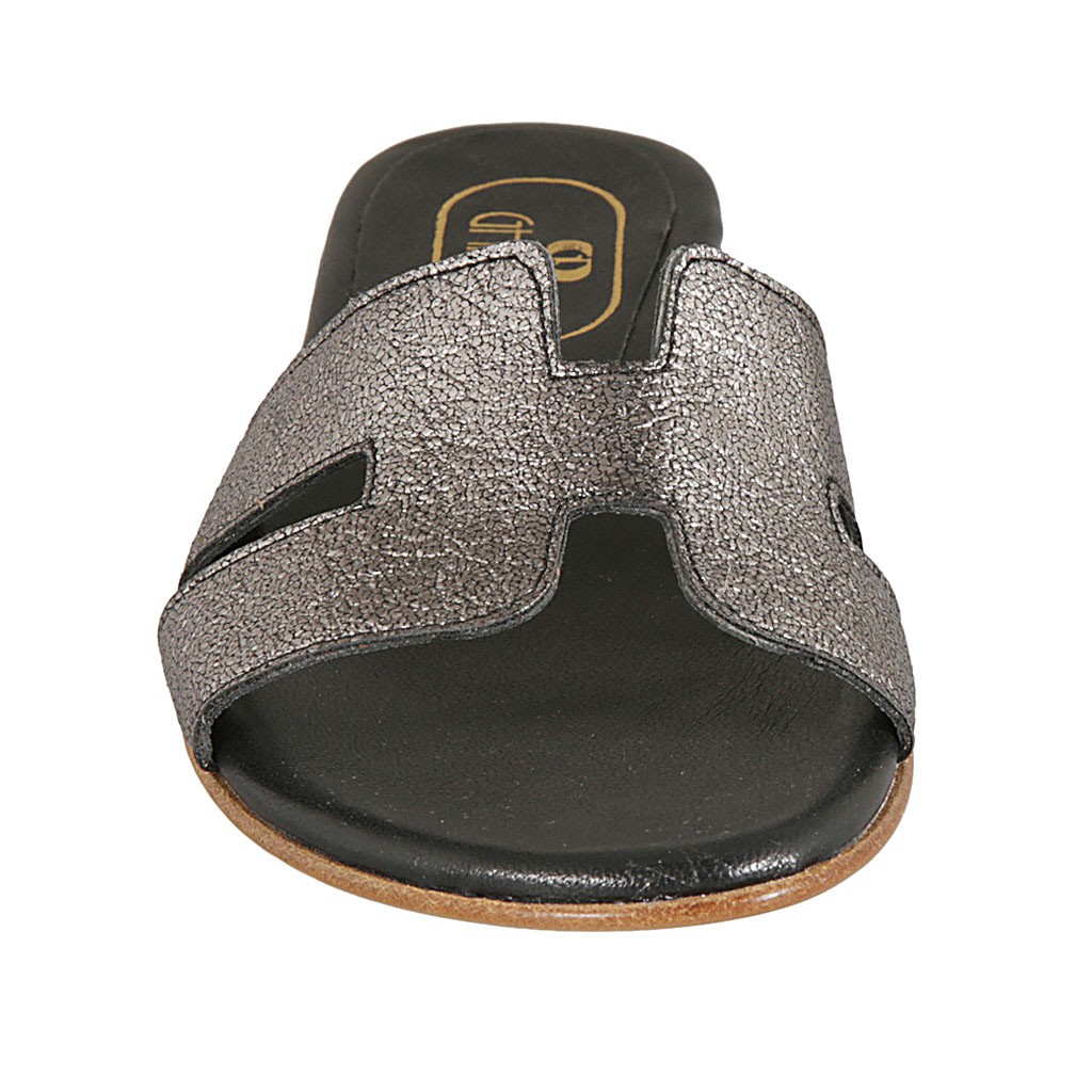 Sabo para mujer en piel laminada estampada plomo tacon 1