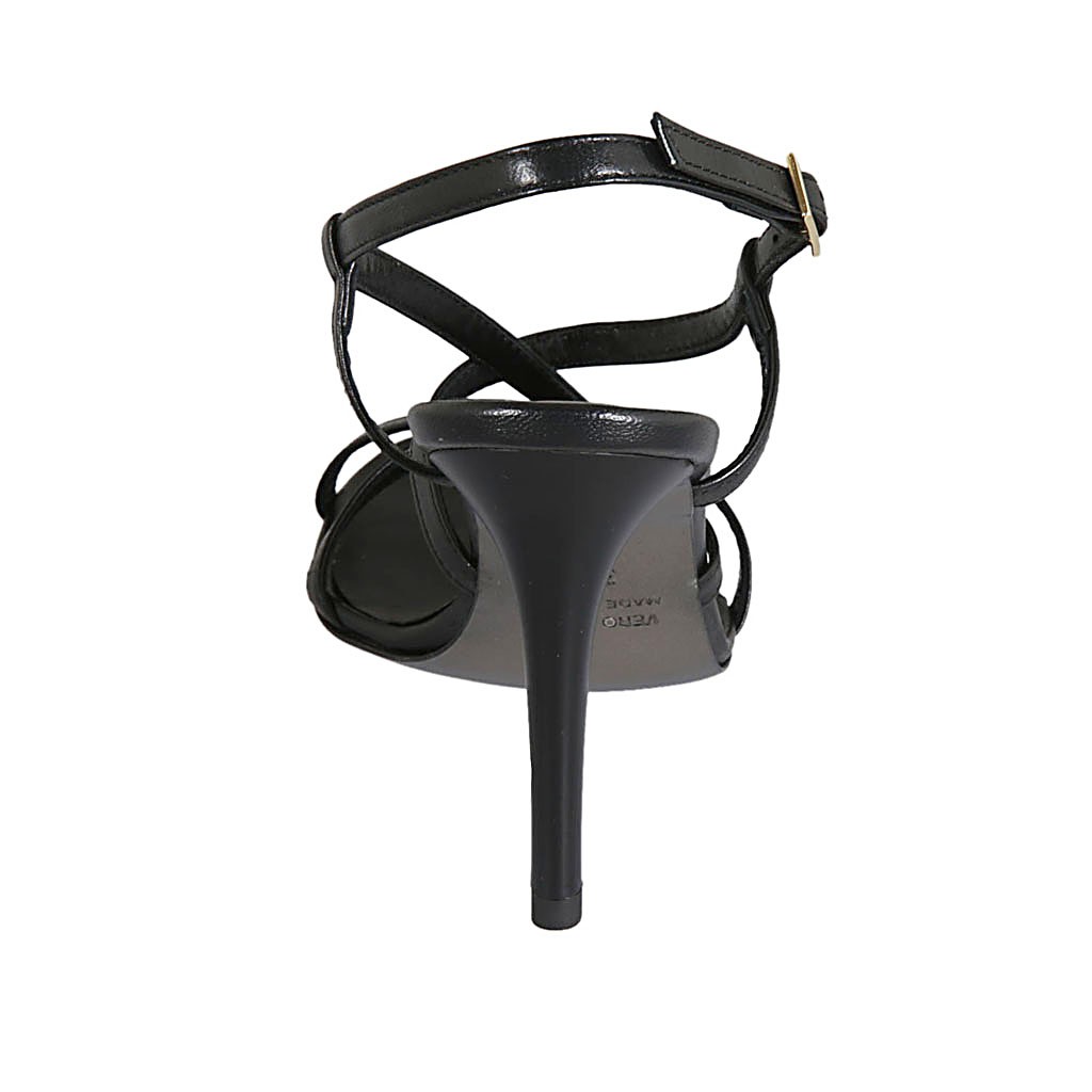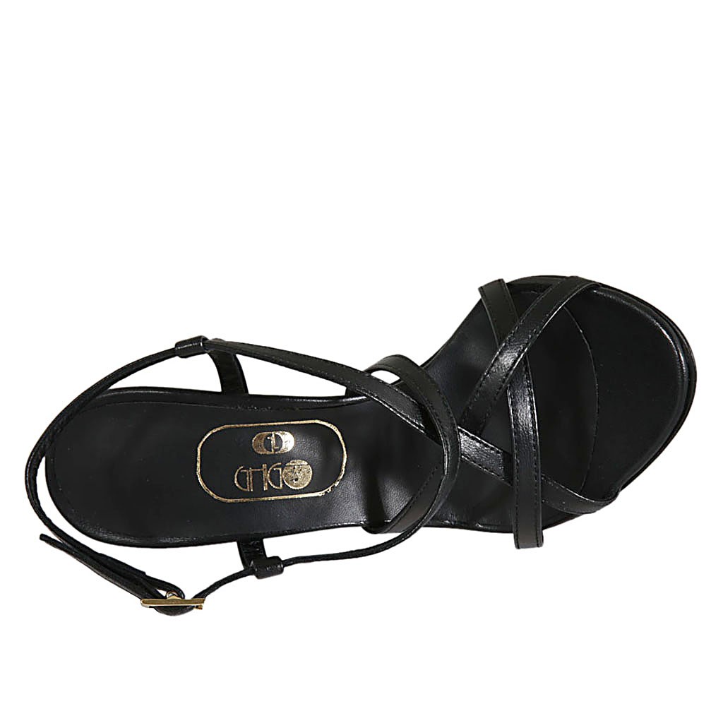 Sandalia para mujer con correas cruzadas en piel negra tacon 9