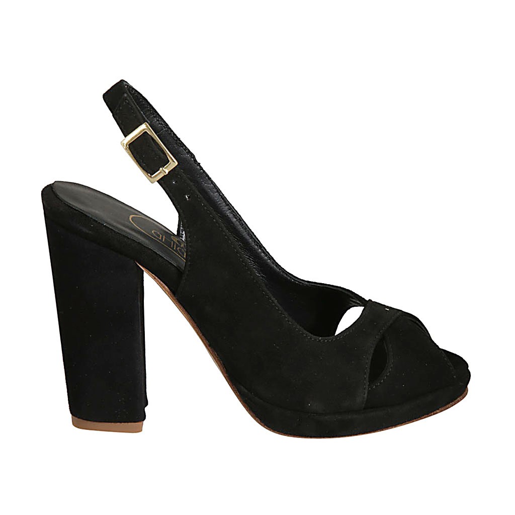 Sandalia para mujer con plataforma en gamuza negra tacon 10