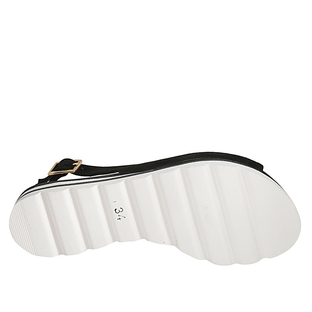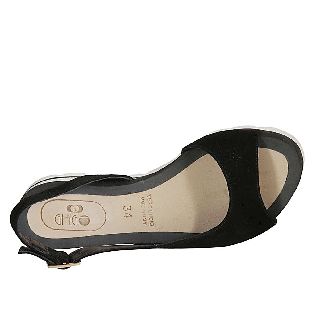 Sandalia para mujer en gamuza negra cuña 2