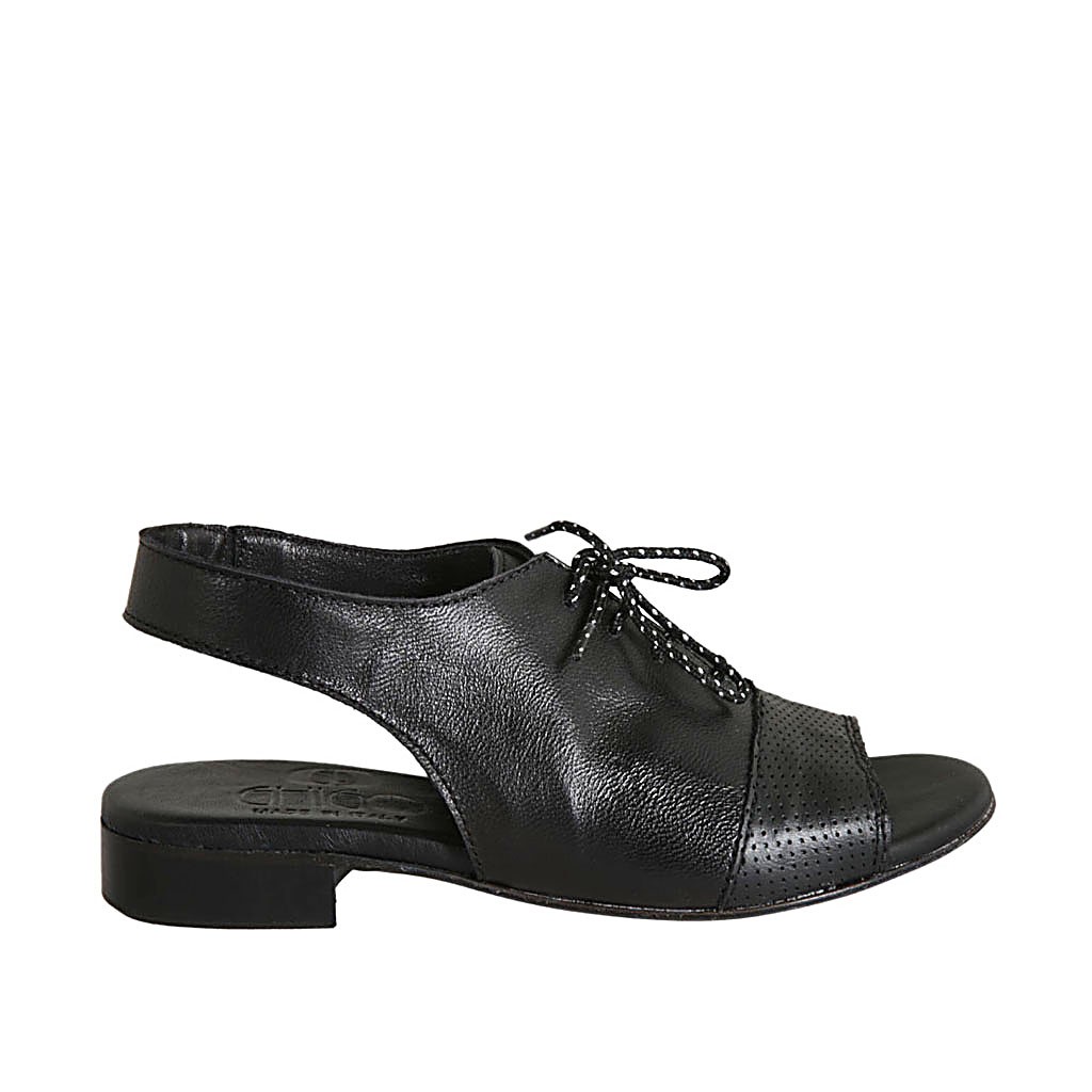 Sandalia con cordones y elastico para mujer en piel negra tacon 2