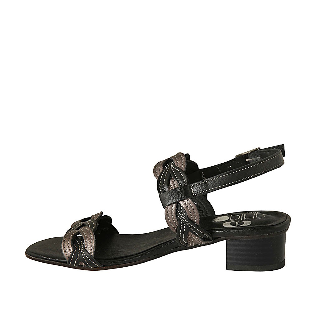 Sandalia para mujer en piel negra y bronce de cañon tacon 4