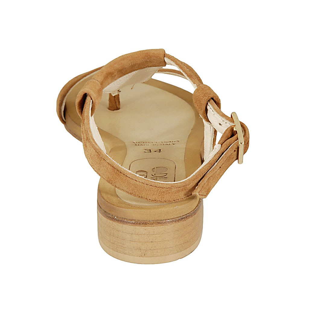 Sandalia de dedo para mujer en gamuza color cuero tacon 2