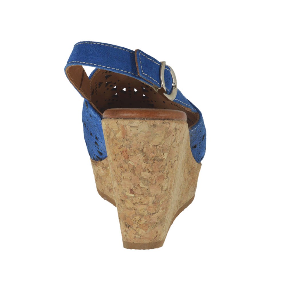 Sandalia para mujer en gamuza perforada azul aciano con plataforma y cuña 8