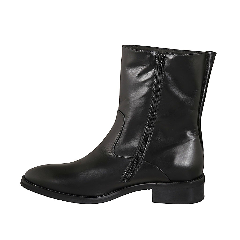Botines para mujer con cremallera en piel negra tacon 3