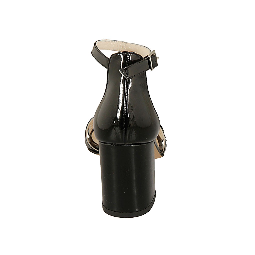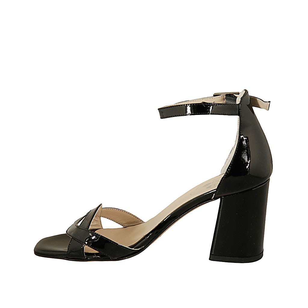 Zapato abierto para mujer en charol negro con cinturon tacon 7