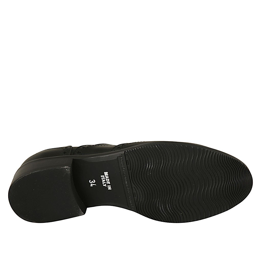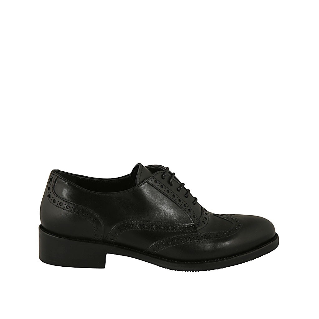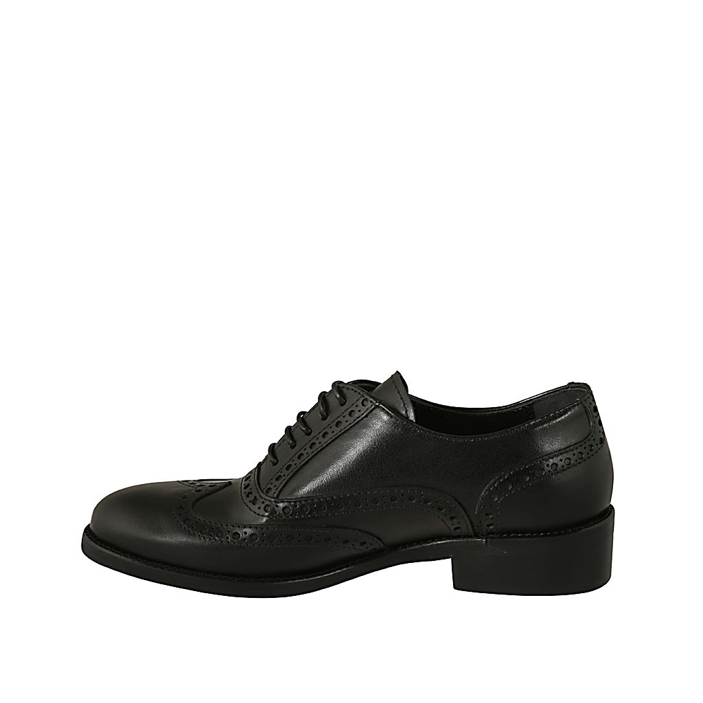 Zapato oxford con cordones y decoraciones a punta de ala para mujer en piel negra tacon 3
