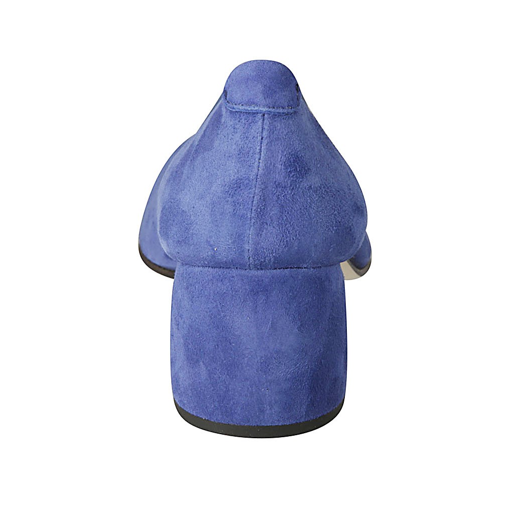 Zapato de salon a punta para mujer en gamuza azul aciano tacon 5