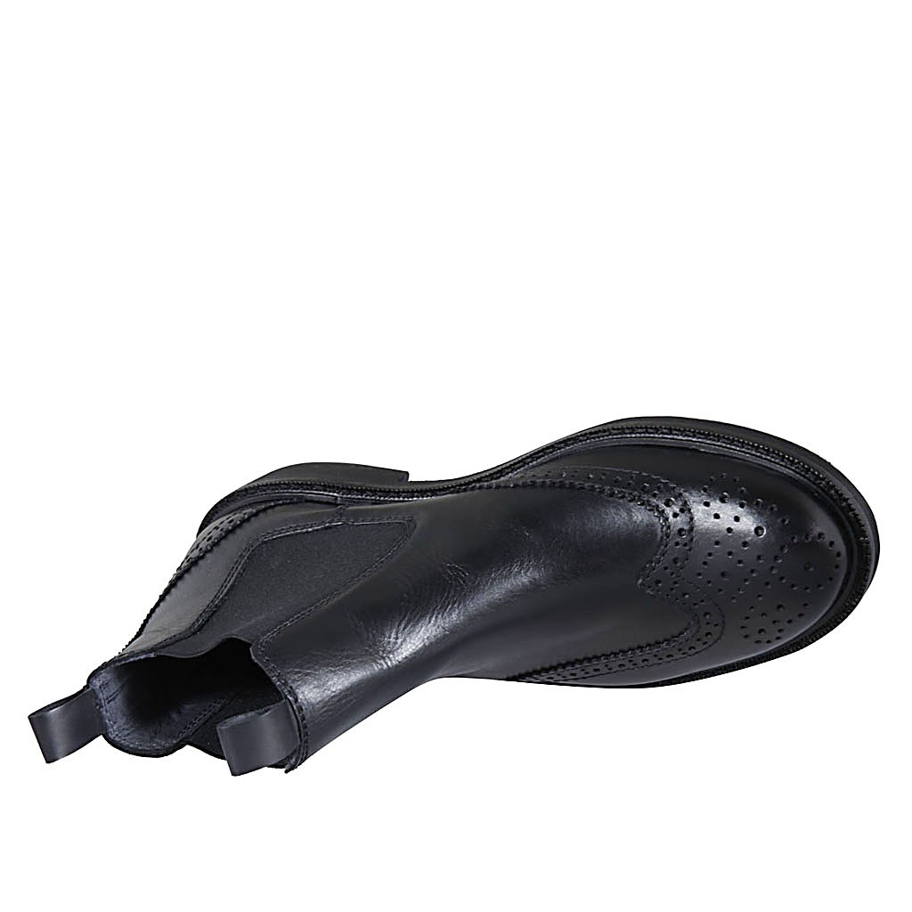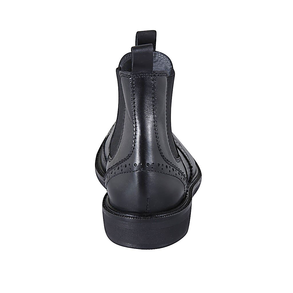 Botin para hombre con elasticos y decoraciones Brogue en piel negra