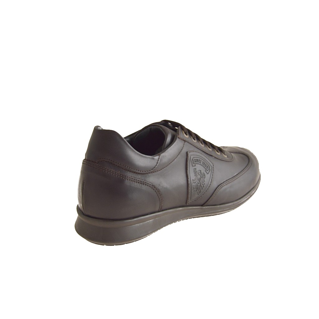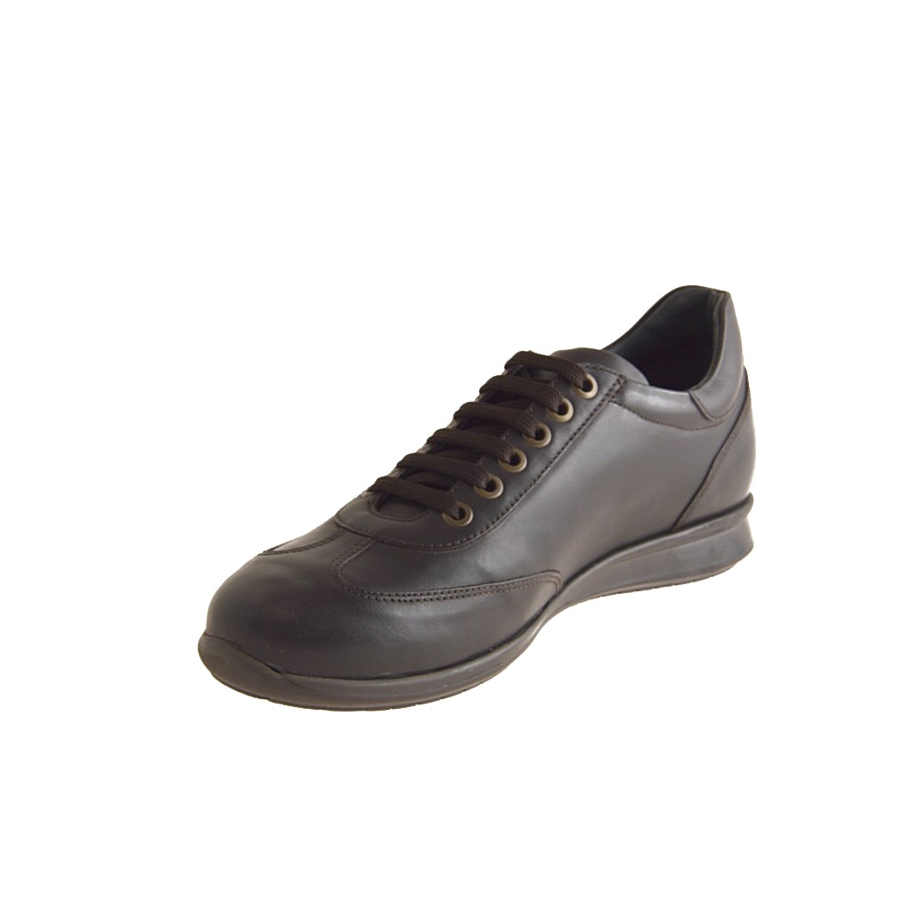 Zapato deportivo con cordones para hombre, en piel marrón oscuro, fondo en goma, forro en piel.