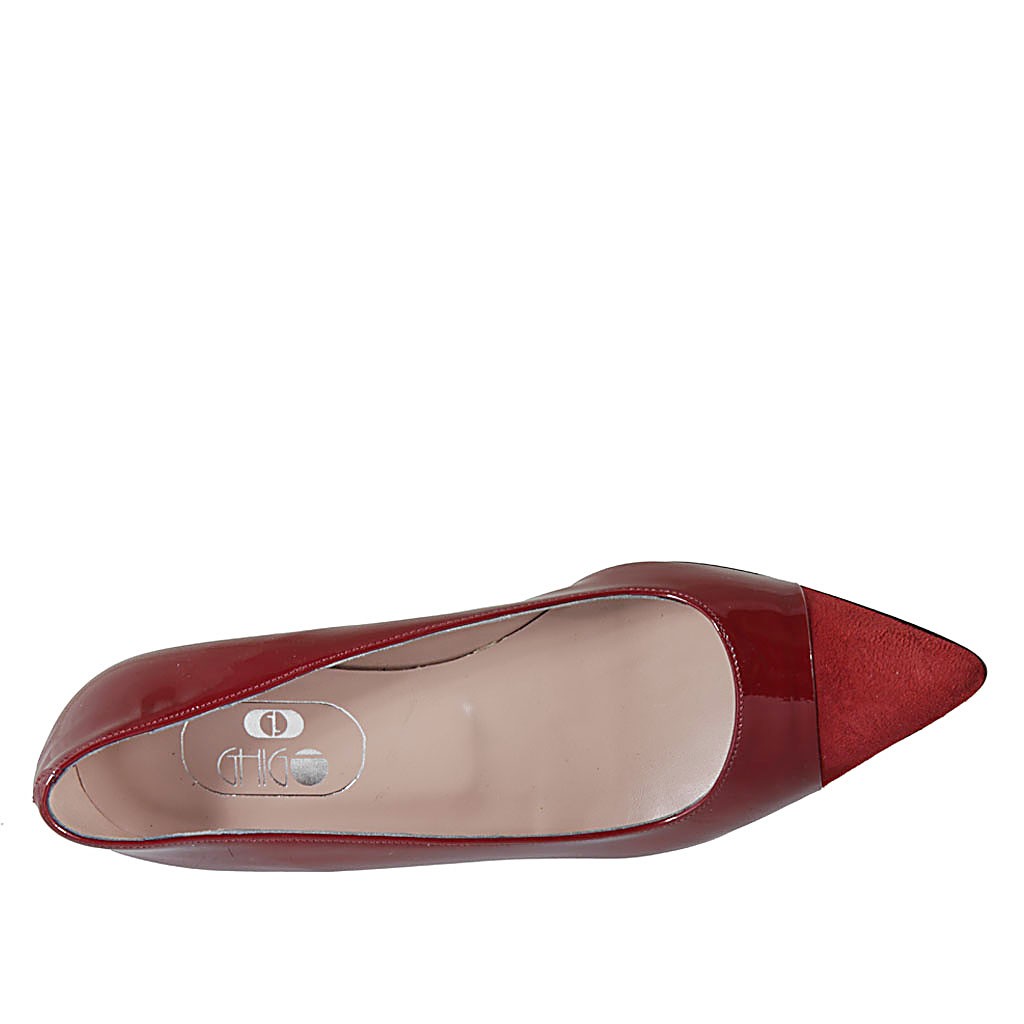 Ballerine à bout pointu pour femmes en cuir verni et daim rouge talon 1