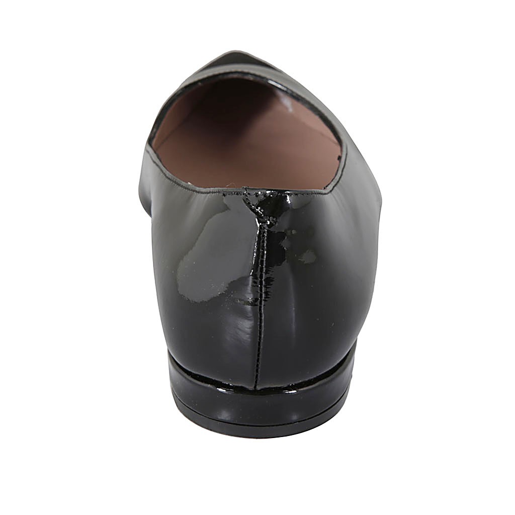Ballerine à bout pointu pour femmes en cuir verni et daim noir talon 1