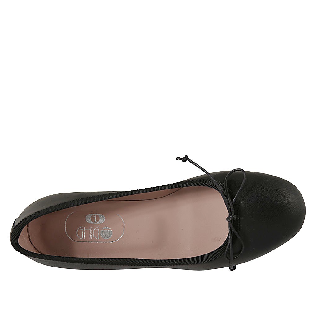 Ballerine avec noeud pour femmes en cuir noir talon 1