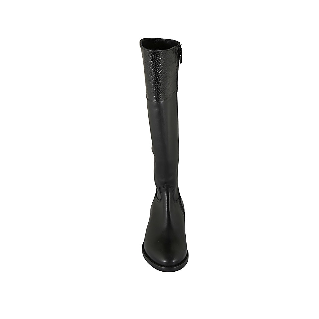 Bottes pour femmes avec fermeture éclair interieur en cuir et cuir imprimé noir talon 3