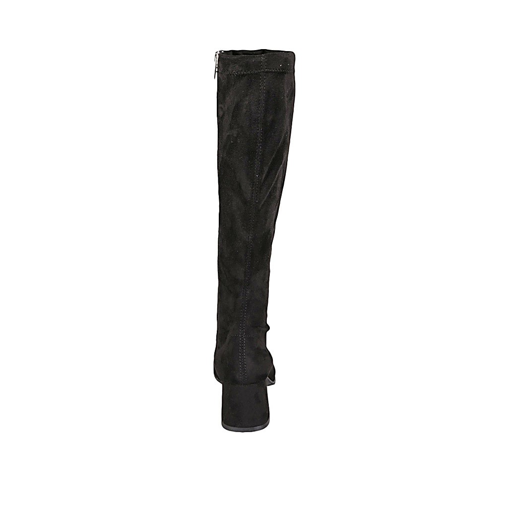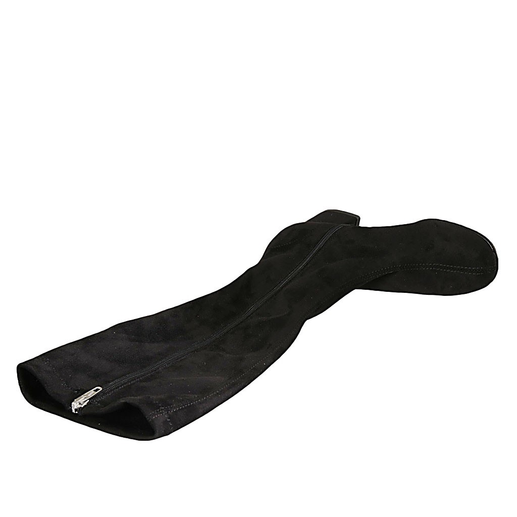 Bottes pour femmes avec fermeture éclair en daim et tissu elastique noir talon 5