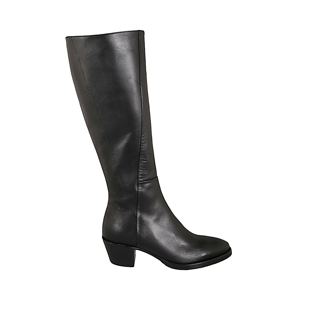Bottes Texan pour femmes avec fermeture éclair en cuir noir talon 5