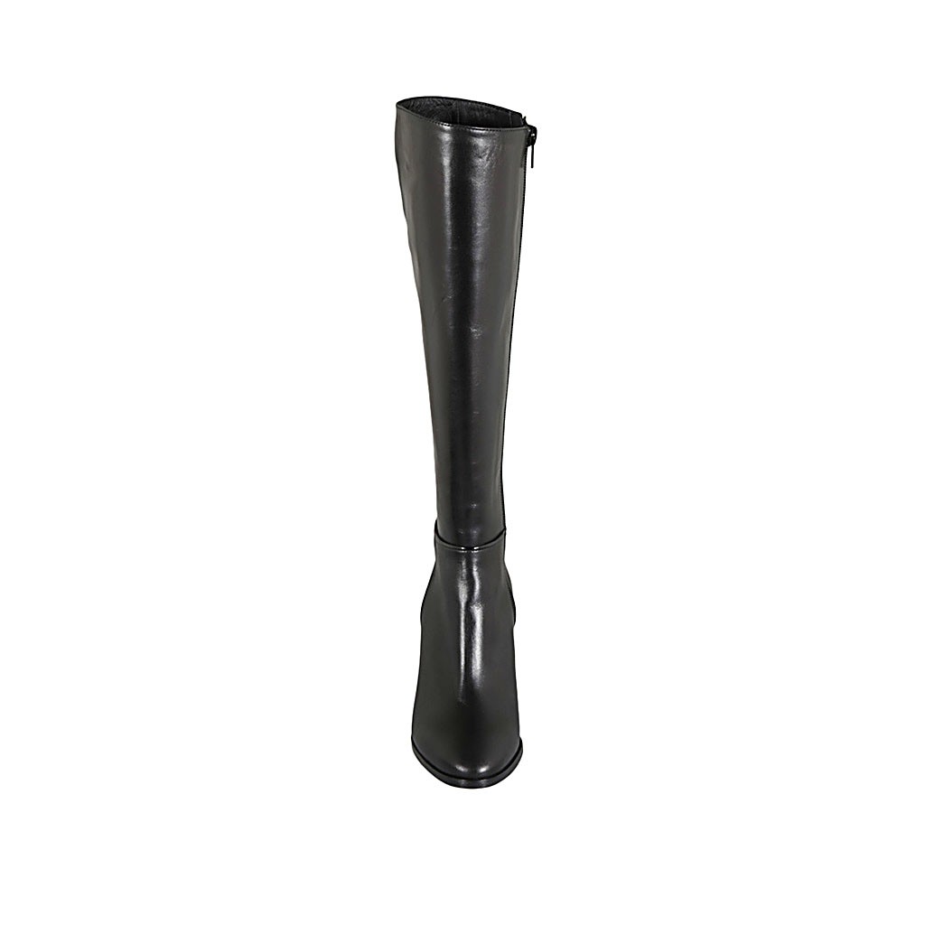 Bottes pour femmes en cuir noir avec fermeture éclair talon 8