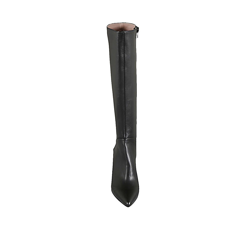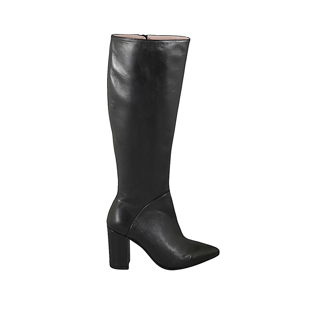 Bottes à bout pointu pour femmes avec fermeture eclair en cuir noir talon 8