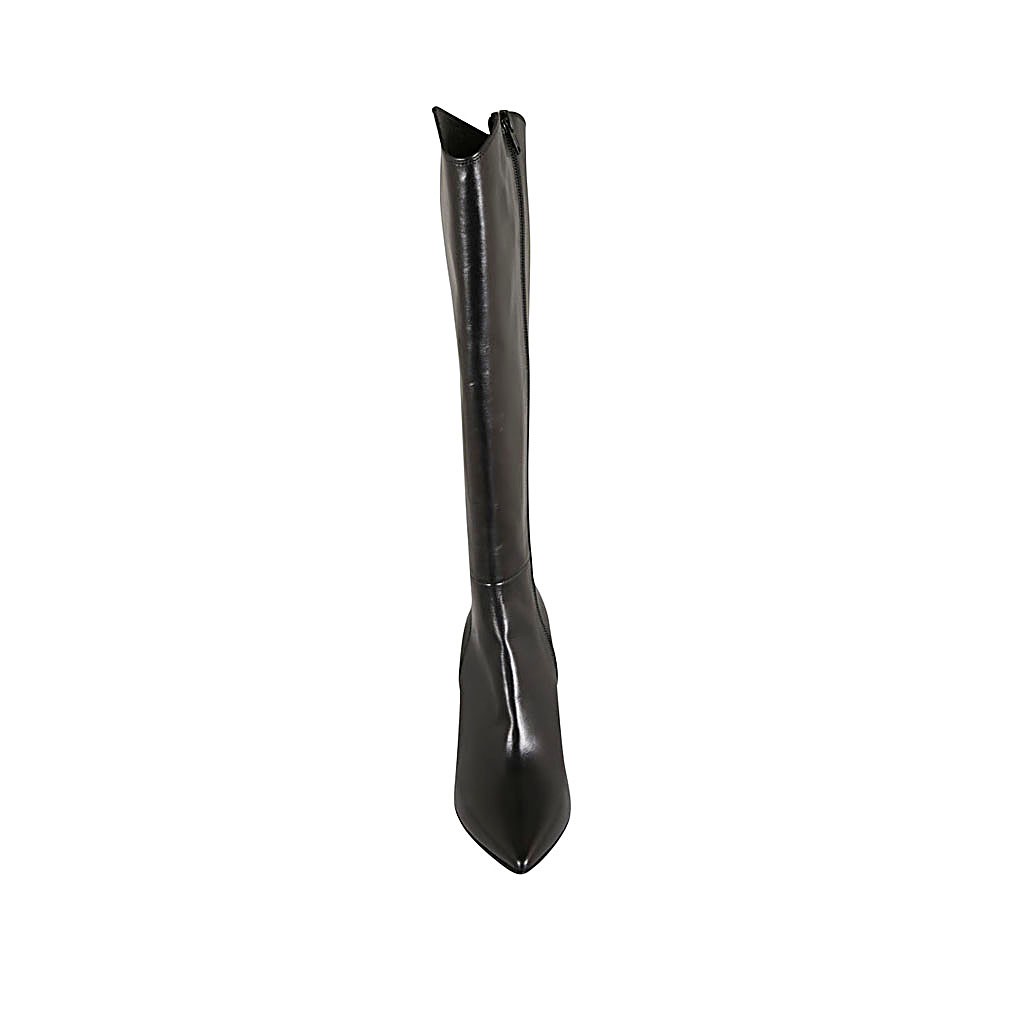 Bottes à bout pointu pour femmes avec fermeture éclair en cuir noir talon 8